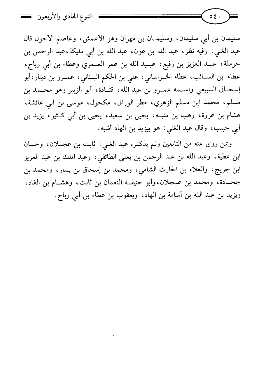 سليمان بن أبي سليمان وسليمان بن مهران وهو الأعمش وعاصم الأحول قال عبد الغني: وفيه نظر عبد الله بن عون عبد الله بن أبي مليكة عبد الرحمن بن حرملة عبد العزيز بن رفيع عبيد الله بن عمر العمري وعطاء بن أبي رباح عطاء ابن السائب عطاء الخراساني علي بن الحكم البناني عمرو بن دينار أبو إسحاق السبيعي واسمه عمرو بن عبد الله قتادة أبو الزبير وهو محمد بن مسلم محمد ابن مسلم الزهري مطر الوراق مكحول موسى بن أبي عائشة هشام بن عروة وهب بن منبه يحيى بن سعيد يحيى بن أبي كثير يزيد بن أبي حبيب وقال عبد الغني هو بيزيد بن الهاد أشبه.