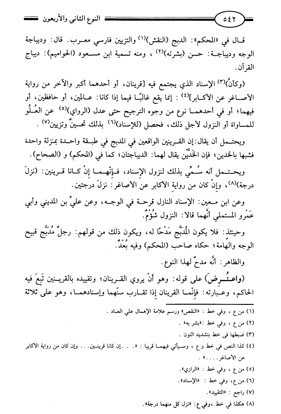 "وكأن"3 الإسناد الذي يجتمع فيه [قرينان أو أحدهما أكبر والآخر من رواية الأصاغر عن الأكابر] 4: إنما يقع غالبا فيما إذا كانا عالمين أو حافظين أو فيهما أو في أحدهما نوع من وجوه الترجيح حتى عدل "الرواي"5 عن العلو للمساواة أو النزول لأجل ذلك فحصل "للإسناد"6 بذلك تحسين وتزيين7