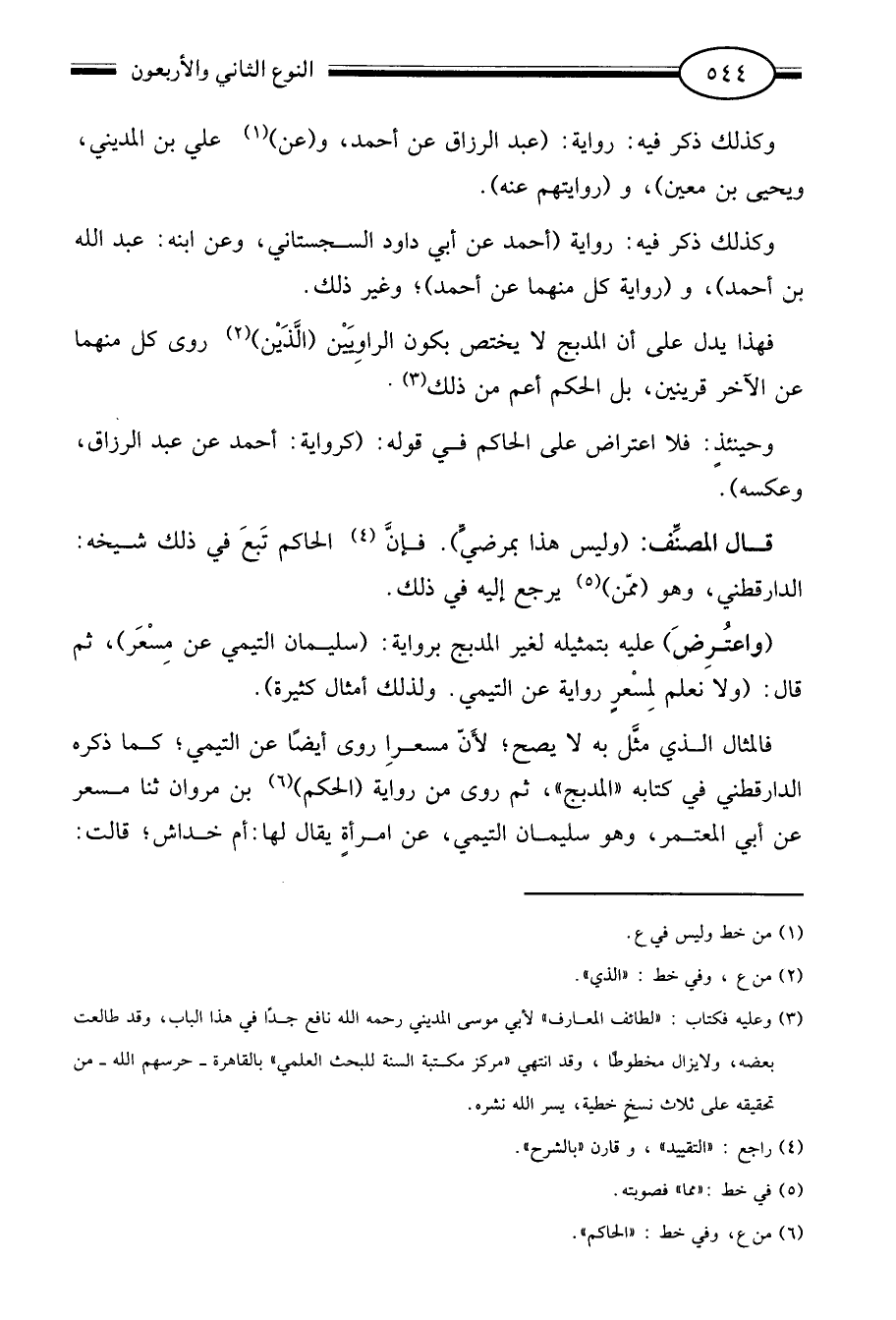 فالمثال الذي مثل به لا يصح لأن مسعرا روى أيضا عن التيمي كما ذكره الدارقطني في كتابه المدبج ثم روى عن رواية "الحكم"6 بن مروان ثنا مسعر عن أبي المعتمر وهو سليمان التيمي عن امرأة يقال لها أم خداش قالت: