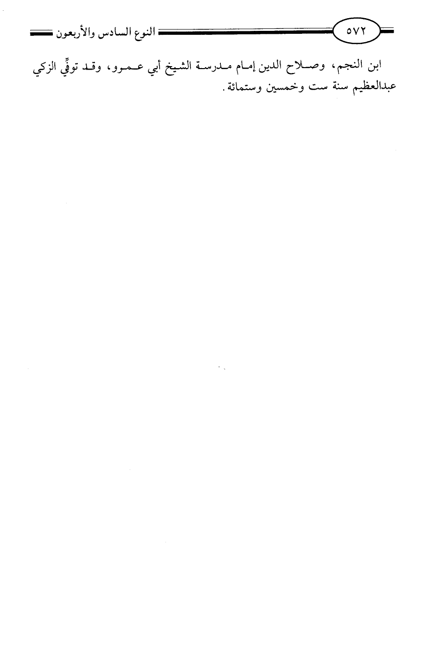 ابن النجم وصلاح الدين إمام مدرسة الشيخ أبي عمرو وقد توفي الزكي عبد العظيم سنة ست وخمسين وستمائة.