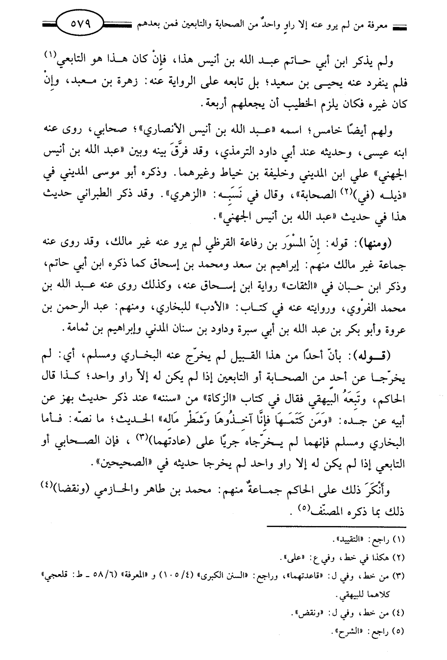 ولم يذكر ابن أبي حاتم عبد الله بن أنيس هذا فإن كان هذا هو التابعي1 فلم ينفرد عنه يحيى بن سعيد بل تابعه على الرواية عنه زهرة بن معبد وإن كان غيره فكان يلزم الخطيب أن يجعلهم أربعة.