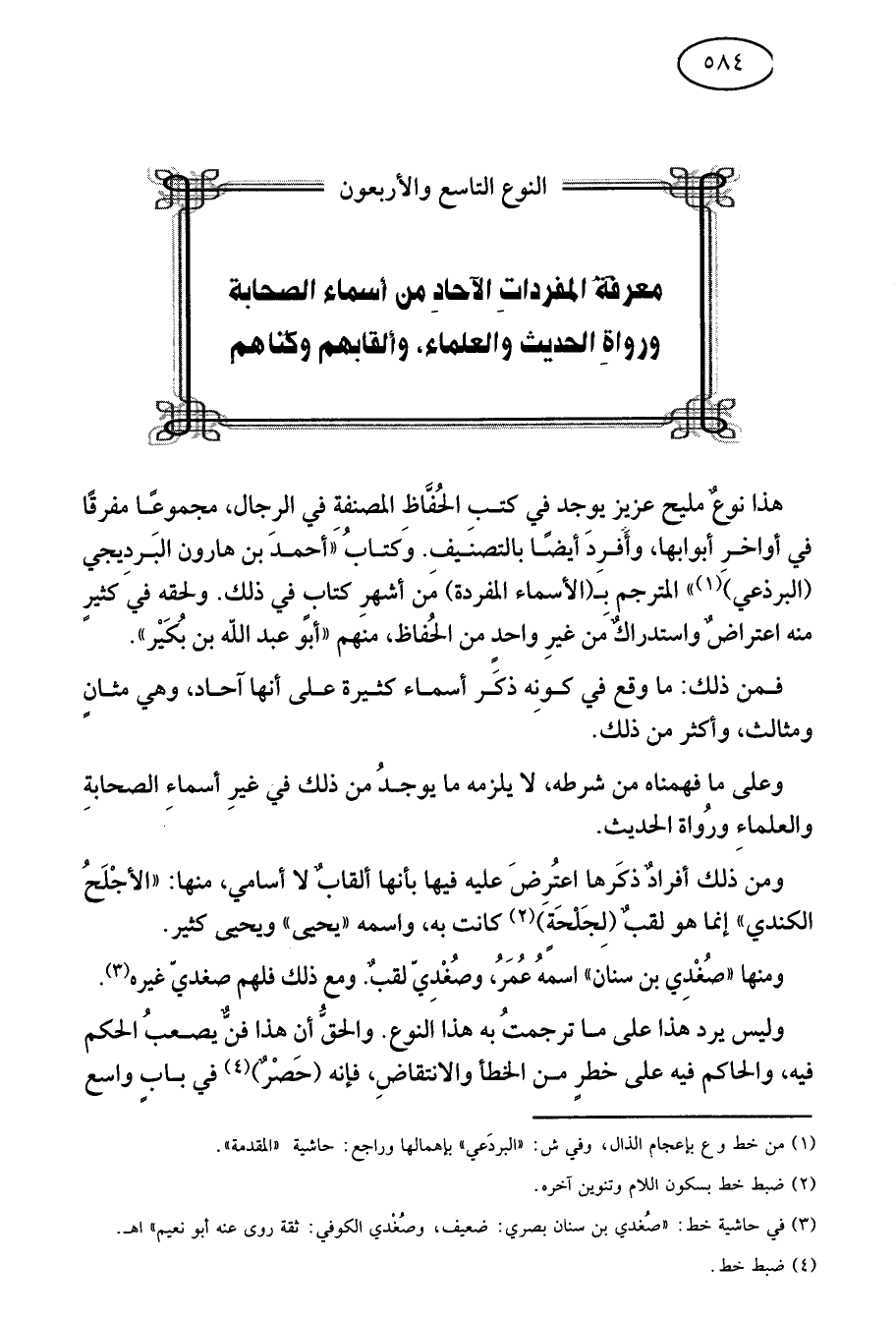 هذا نوع مليح عزيز يوجد في كتب الحفاظ المصنفة في الرجال مجموعا مفرقا في أواخر أبوابها وأفرد أيضا بالتصنيف. وكتاب "أحمد بن هارون البرديجي البرذعي1" المترجم بالأسماء المفردة من أشهر كتاب في ذلك ولحقه في كثير منه اعتراض واستدراك من غير واحد من الحفاظ منهم أبو عبد الله بن بكير.