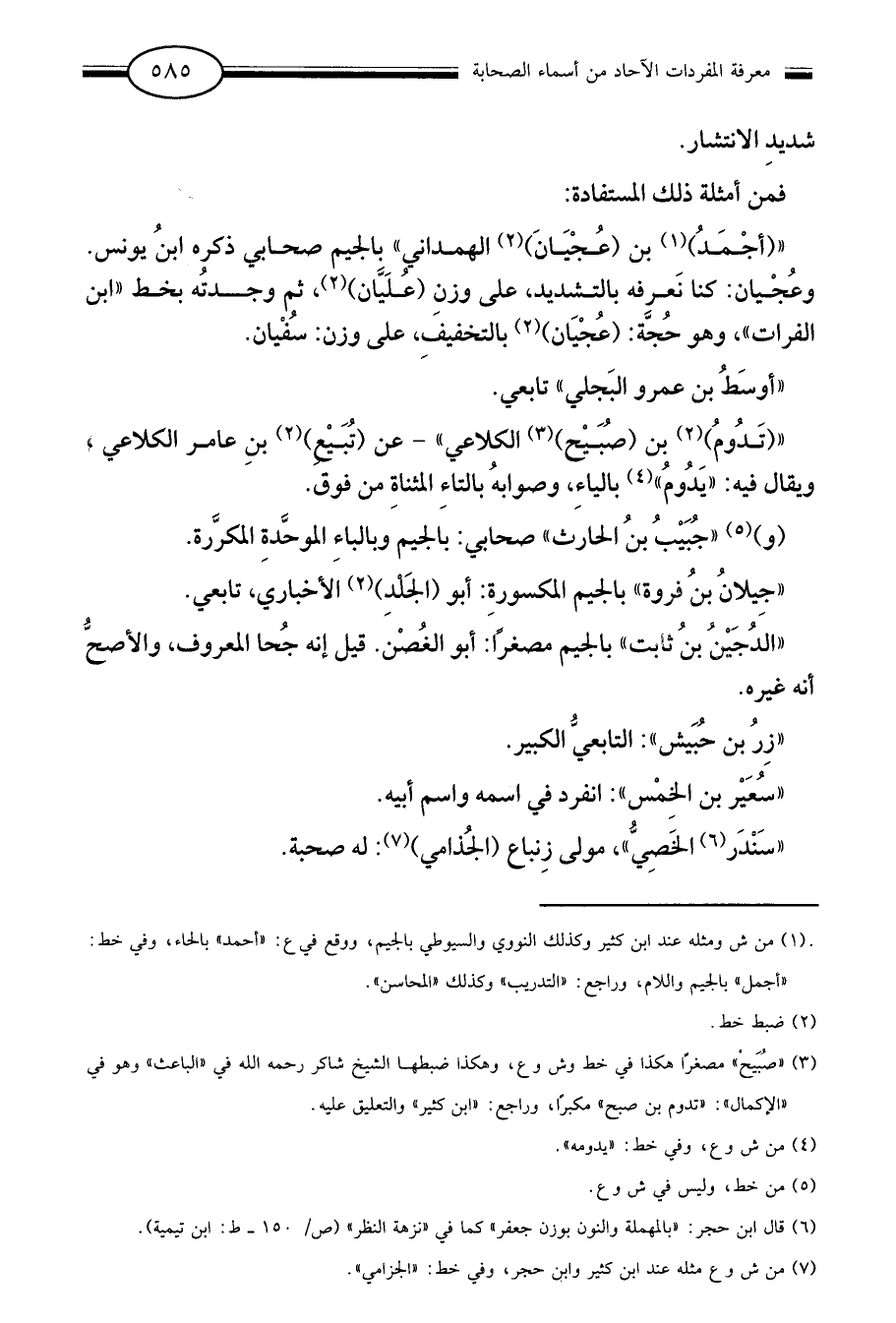 6 قال ابن حجر: "بالمهملة والنون بوزن جعفر" كما في "نزهة النظر" "ص/150 - ط: ابن تيمية".
