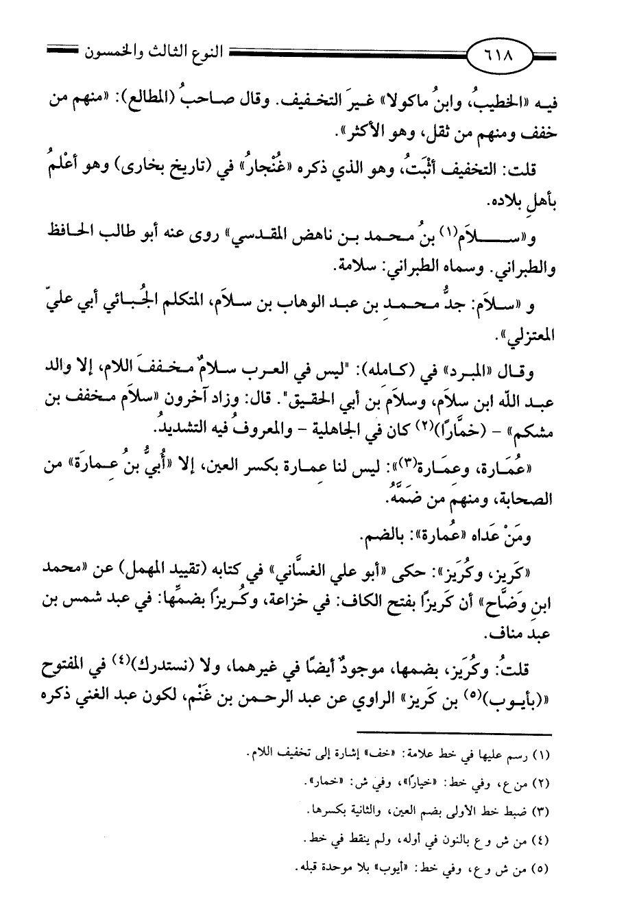 وقال المبرد في كامله: "ليس في العرب سلام مخفف اللام إلا والد عبد الله ابن سلام وسلام بن أبي الحقيق" قال: وزاد آخرون "سلام مخفف بن مشكم"- "خمارا"2 كان في الجاهلية والمعروف فيه التشديد.