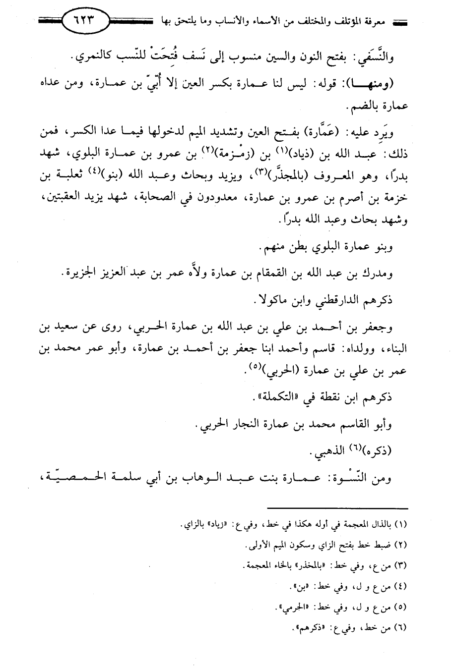 ويرد عليه: عمارة بفتح العين وتشديد الميم لدخولها فيما عدا الكسر فمن ذلك: عبد الله بن "ذياد"1 بن "زمزمة"2 بن عمرو بن عمارة البلوي شهد بدرا وهو المعروف "بالمجذر"3 ويزيد وبحاث وعبد الله "بنو"4 ثعلبة بن خزمة بن أصرم بن عمرو بن عمارة معدودون في الصحابة شهد يزيد العقبتين وشهد بحاث وعبد الله بدرا.