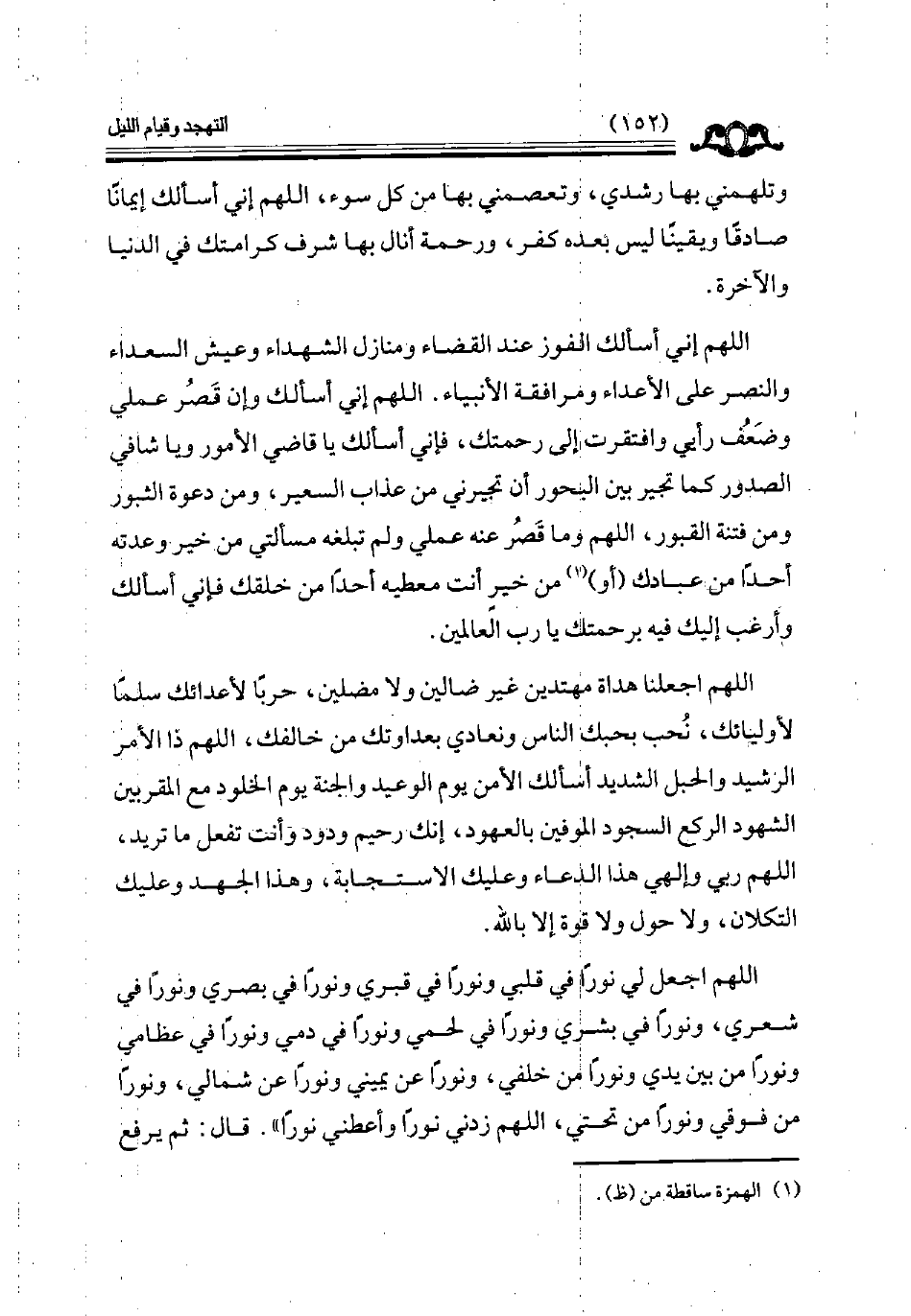 اللهم اجعل لي نورا في قلبي ونورا في قبري ونورا في بصري ونورا في شعري ونورا في بشري ونورا في لحمي ونورا في دمي ونورا في عظامي ونورا من بين يدي ونورا خلفي ونورا عن يميني ونورا عن شمالي ونورا من فوقي ونورا من تحتي اللهم زدني نورا وأعطني نورا ) قال ثم يرفع