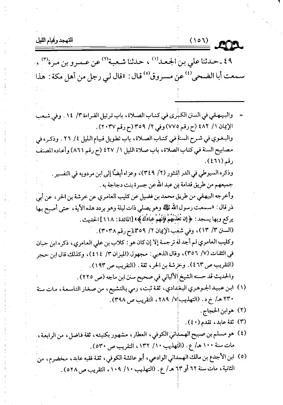 49 - حدثنا علي بن الجعد حدثنا شعبة عن عمرو بن مرة سمعت أبا الضحى عن مسروق قال قال لي رجل من أهل مكة هذا