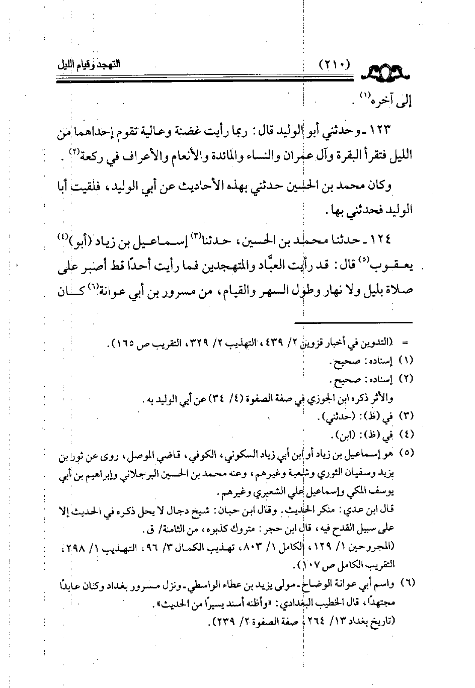 124 - حدثنا محمد بن الحسين حدثنا إسماعيل بن زياد أبو يعقوب قال قد رأيت العباد والمتهجدين فما رأيت أحدا قط أصبر على صلاة بليل ولا نهار وطول السهر والقيام من مسرور بن أبي عوانه كان