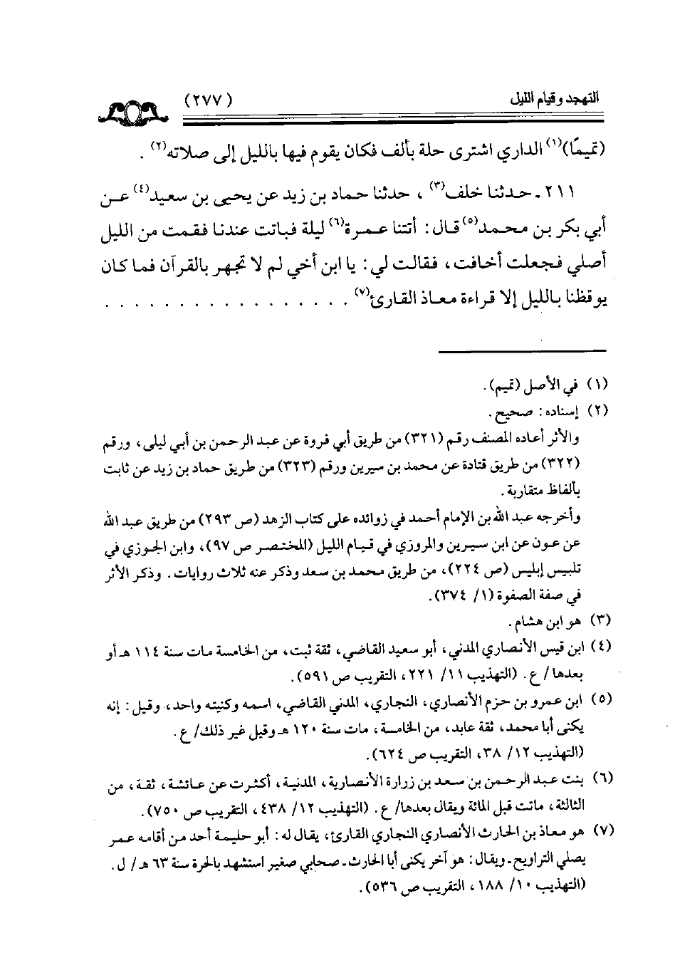 تميما الداري اشترى حلة بألف فكان يقوم فيها بالليل إلى صلاته // إسناده صحيح //