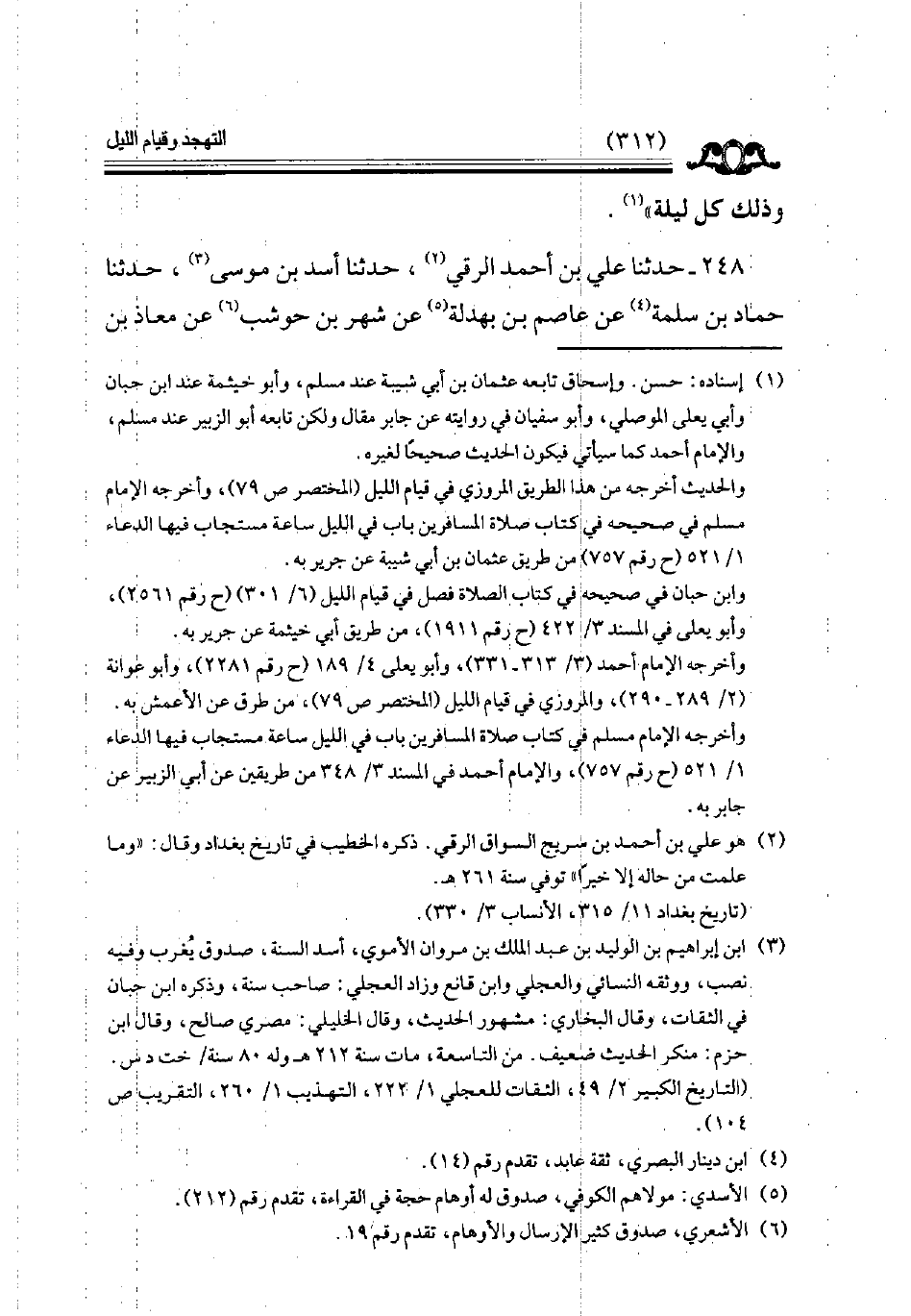 248 - حدثنا علي بن أحمد الرقي حدثنا أسد بن موسى حدثنا حماد بن سلمة عن عاصم بن بهدلة عن شهر بن حوشب عن معاذ بن