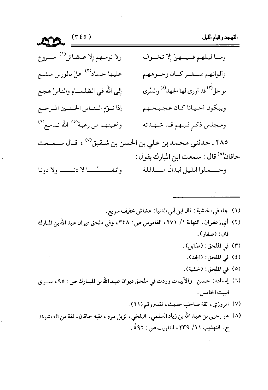 ( وحملوا الليل أبدانا مذللة ... وأنفسا لا دنيا ولا دونا )