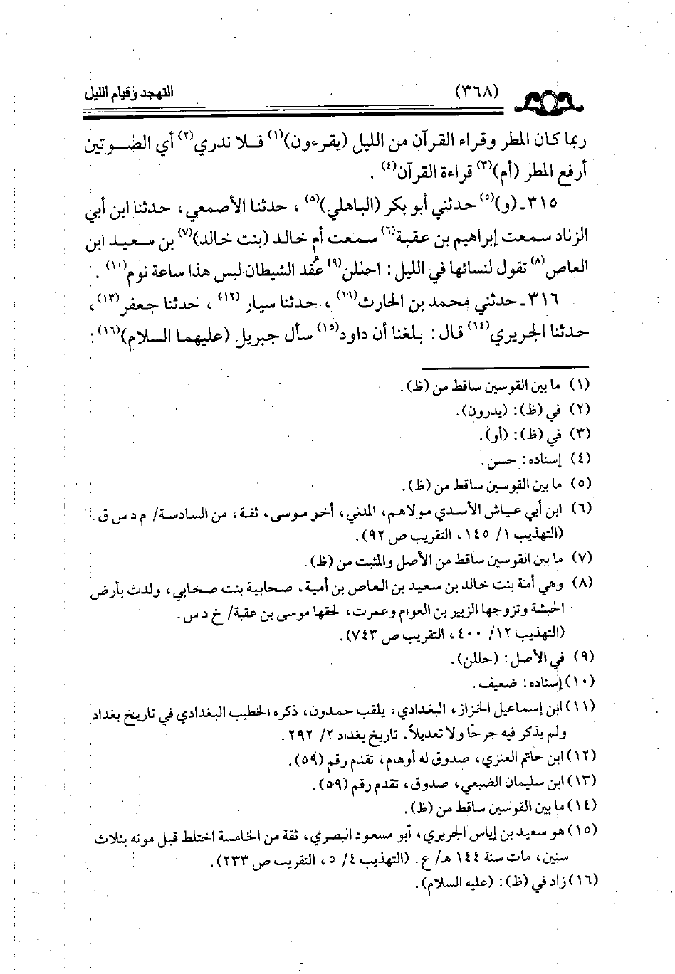 316 - حدثني محمد بن الحارث حدثنا سيار حدثنا جعفر حدثنا الجريري قال بلغنا أن داود سأل جبريل عليهما السلام
