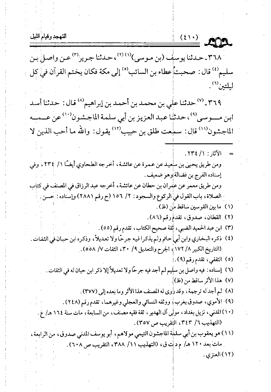 368 - حدثنا يوسف بن موسى حدثنا جرير عن واصل بن سليم قال صحبت عطاء بن السائب إلى مكة فكان يختم القرآن في كل ليلتين // إسناده فيه واصل بن سليم لم أجد فيه جرحا ولا تعديلا إلا وذكر ابن حبان له في الثقات //