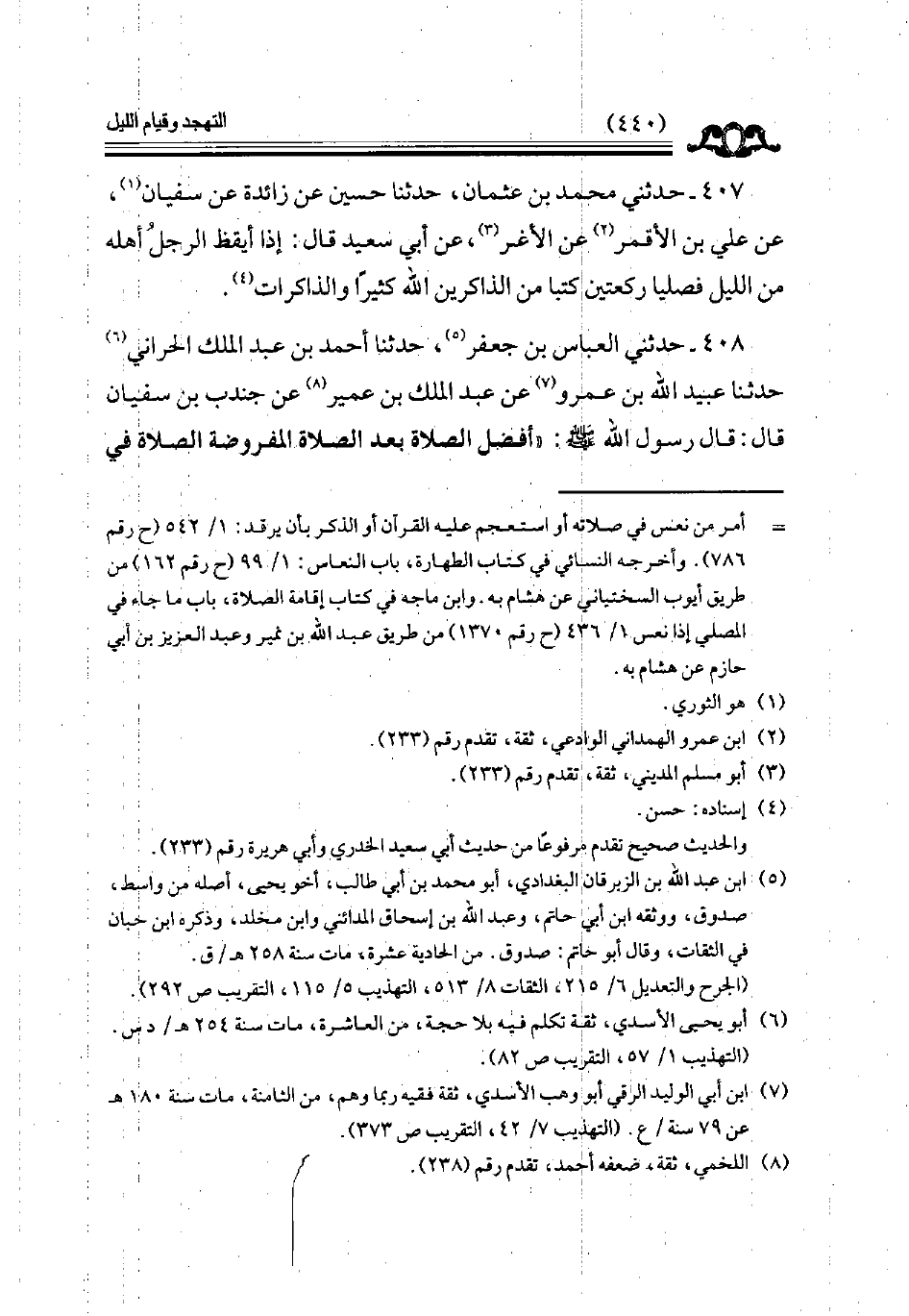 408 - حدثني العباس بن جعفر حدثنا أحمد بن عبد الملك الحراني حدثنا عبيد الله بن عمرو عن عبد الملك بن عمير عن جندب بن سفيان قال قال رسول الله ( أفضل الصلاة بعد الصلاة المفروضة الصلاة في