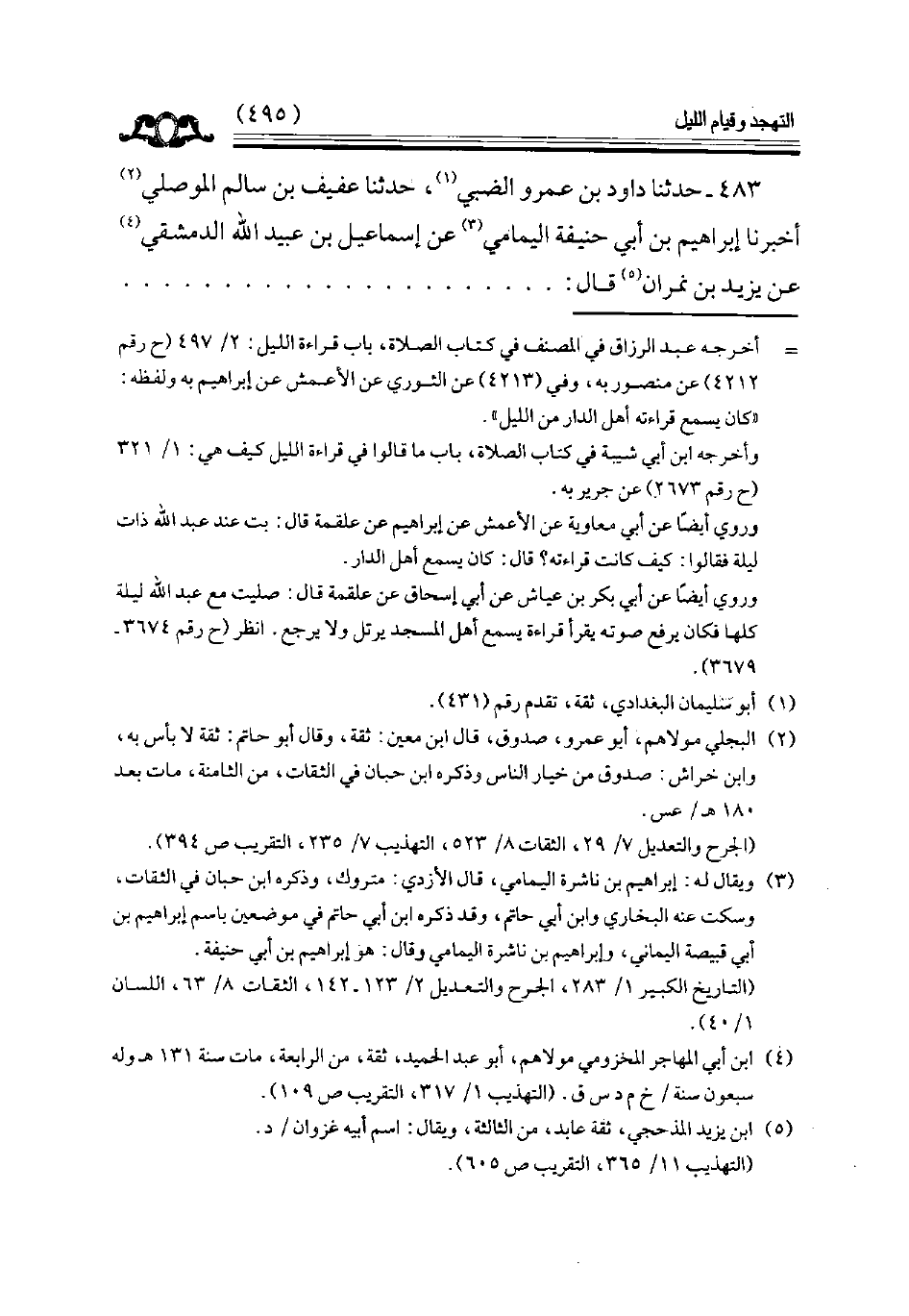 483 - حدثنا داود بن عمرو الضبي حدثنا عفيف بن سالم الموصلي أخبرنا إبراهيم بن أبي حنيفة اليمامي عن إسماعيل بن عبيد الله الدمشقي عن يزيد بن نمران قال