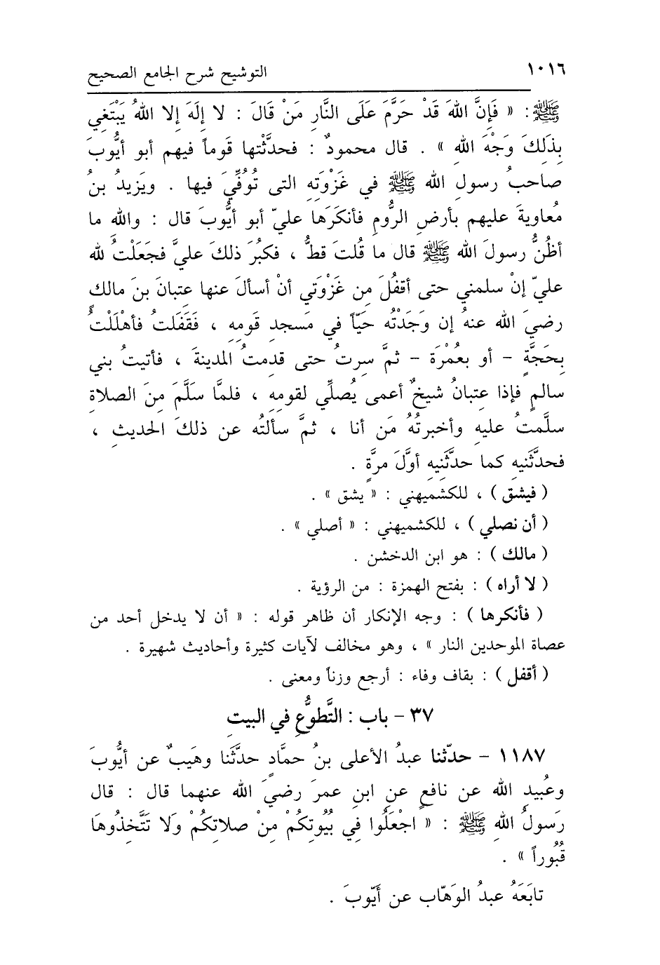 37 - بَابُ التَّطَوُّعِ فِي البَيْتِ