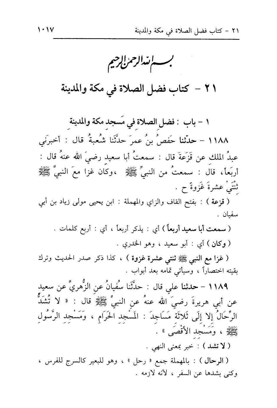 21 - كتاب فضل الصلاة في مكة والمدينة
