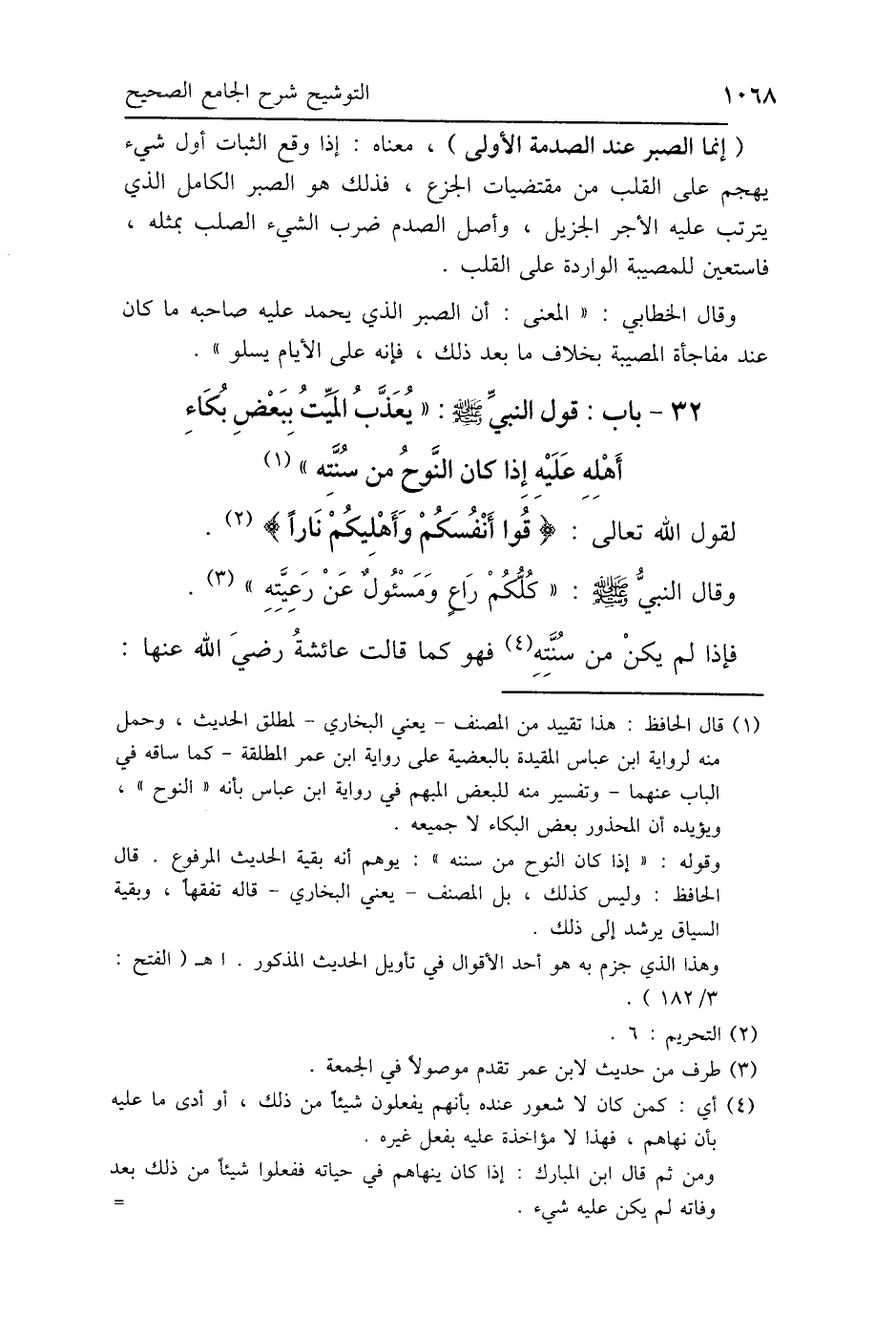 (إنما الصبر عند الصدمة الأولى)، معناه: إذا وقع الثبات أول شيء يهجم على القلب من مقتضيات الجزع، فذلك هو الصبر الكامل الذي يترتب عليه الأجر الجزيل، وأصل الصدم ضرب الشيء الصلب بمثله، فاستعين للمصيبة الواردة على القلب.