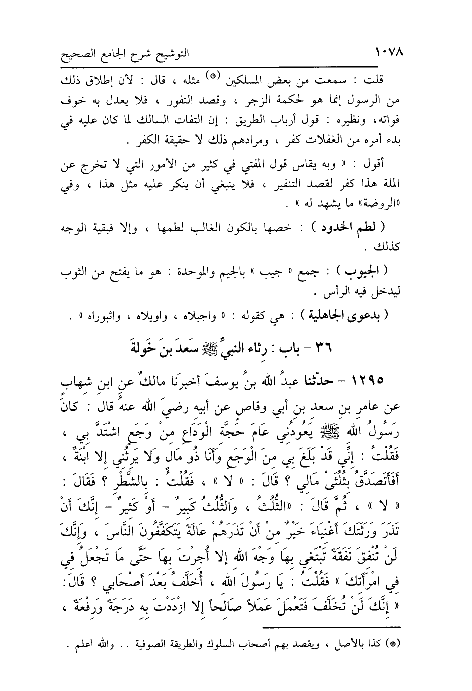 قلت: سمعت من بعض المسلكين مثله، قال: لأن إطلاق ذلك من الرسول إنما هو لحكمة الزجر، وقصد النفور، فلا يعدل به خوف فواته، ونظيره: قول أرباب الطريق: إن التفات السالك لما كان عليه في بدء أمره من الغفلات كفر، ومرادهم ذلك لا حقيقة الكفر.