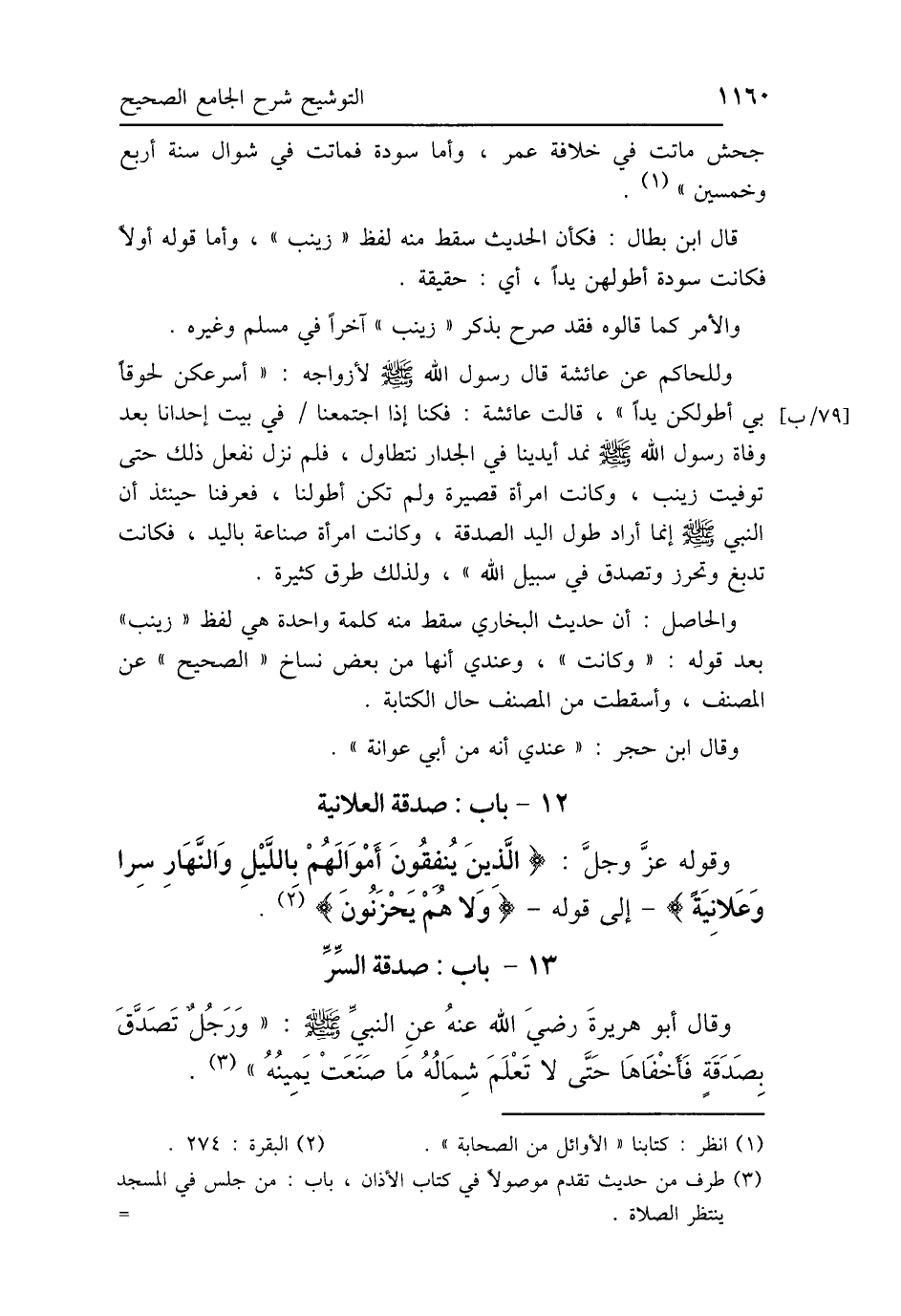والحاصل: أن حديث البخاري سقط منه كلمة واحدة هي لفظ "زينب" بعد قوله: "وكانت"، وعندي أنها من بعض نساخ "الصحيح" عن المصنف، وأسقطت من المصنف حال الكتابة.