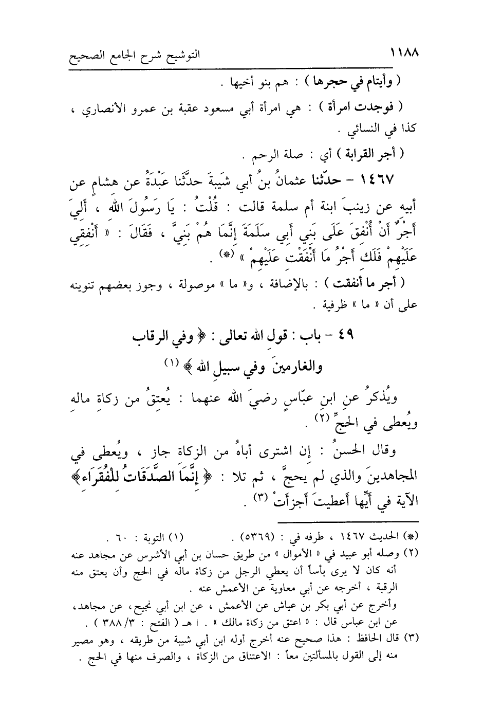 49 - بَابُ قَوْلِ اللَّهِ تَعَالَى: {وَفِي الرِّقَابِ وَالغَارِمِينَ وَفِي سَبِيلِ اللَّهِ} [التوبة: 60]