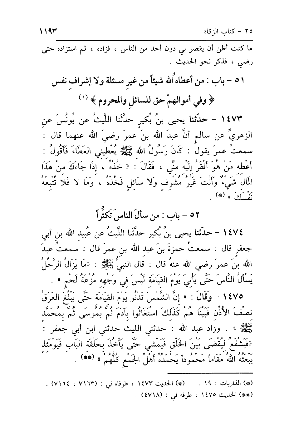 51 - بَابُ مَنْ أَعْطَاهُ اللَّهُ شَيْئًا مِنْ غَيْرِ مَسْأَلَةٍ وَلاَ إِشْرَافِ نَفْسٍ {وَفِي أَمْوَالِهِمْ حَقٌّ لِلسَّائِلِ وَالمَحْرُومِ} [الذاريات: 19]