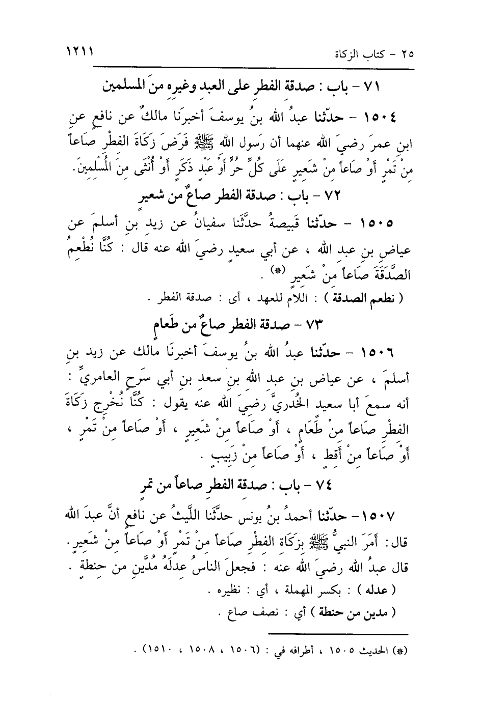 73 - بَابٌ: صَدَقَةُ الفِطْرِ صَاعٌ مِنْ طَعَامٍ
