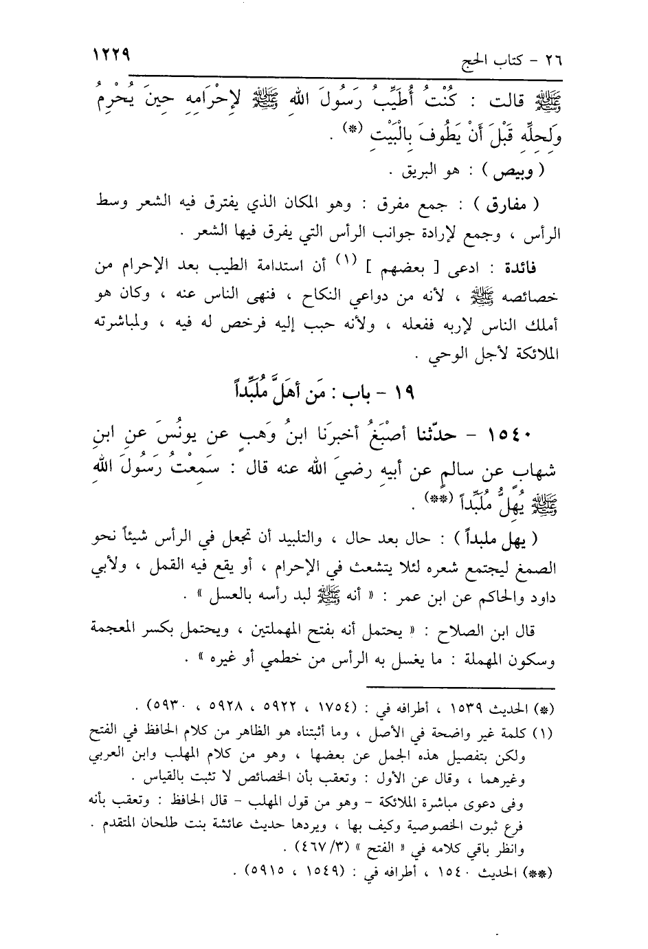 1540 - حَدَّثَنَا أَصْبَغُ، أَخْبَرَنَا ابْنُ وَهْبٍ، عَنْ يُونُسَ، عَنِ ابْنِ شِهَابٍ، عَنْ سَالِمٍ، عَنْ أَبِيهِ رَضِيَ اللَّهُ عَنْهُ، قَالَ: «سَمِعْتُ رَسُولَ اللَّهِ صَلَّى اللهُ عَلَيْهِ وَسَلَّمَ يُهِلُّ مُلَبِّدًا».