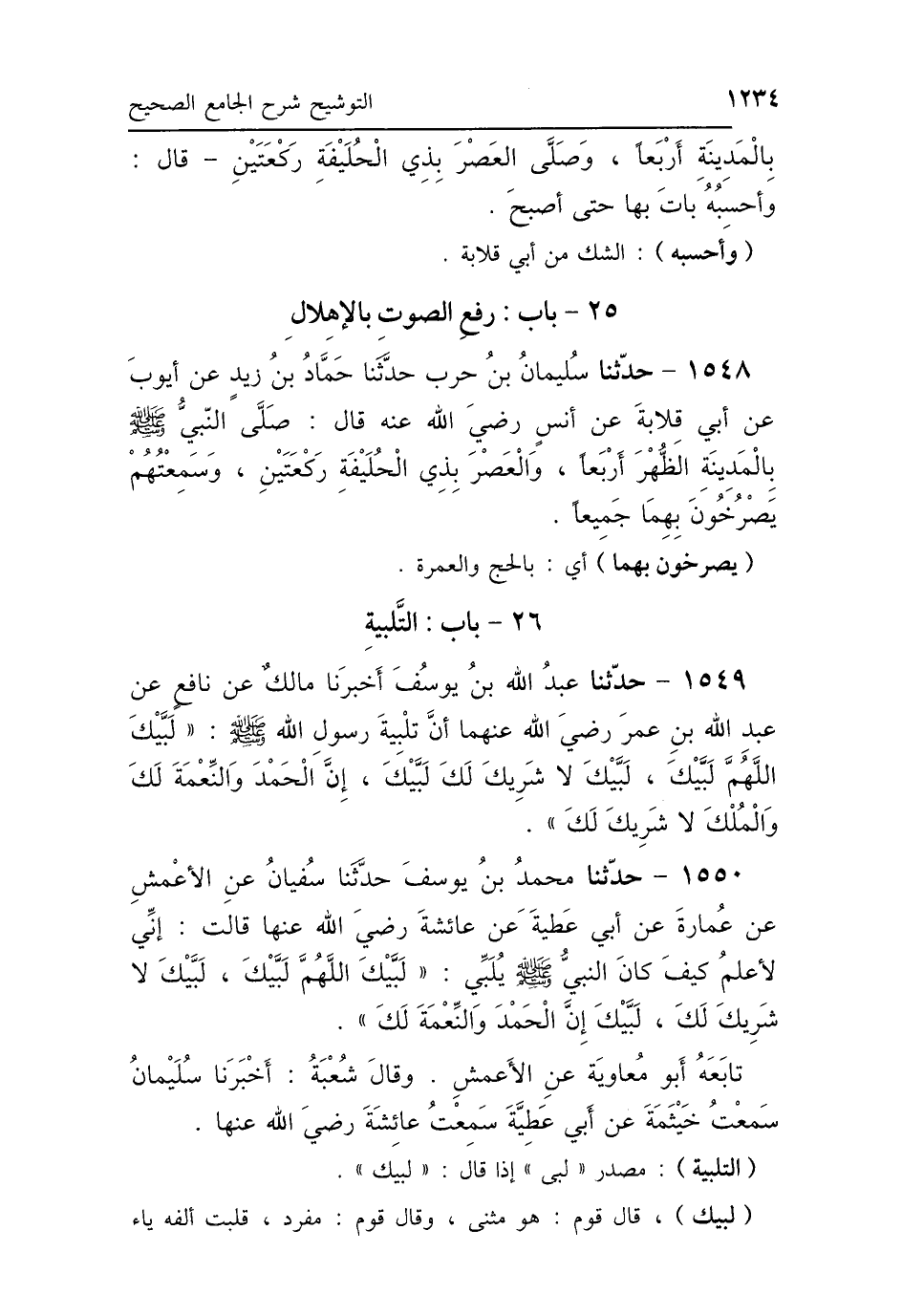 25 - بَابُ رَفْعِ الصَّوْتِ بِالإِهْلاَلِ