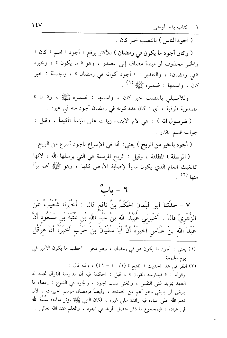 (وكان أجود ما يكون في رمضان) للأكثر برفع "أجود" اسم "كان" والخبر محذوف أو مبتدأ مضاف إلى الصدر، وهو "ما يكون"، وخبره "في رمضان"، والتقدير: "أجود أكوانه في رمضان"، والجملة: خبر كان، واسمها: ضميره - صلى الله عليه وسلم -.