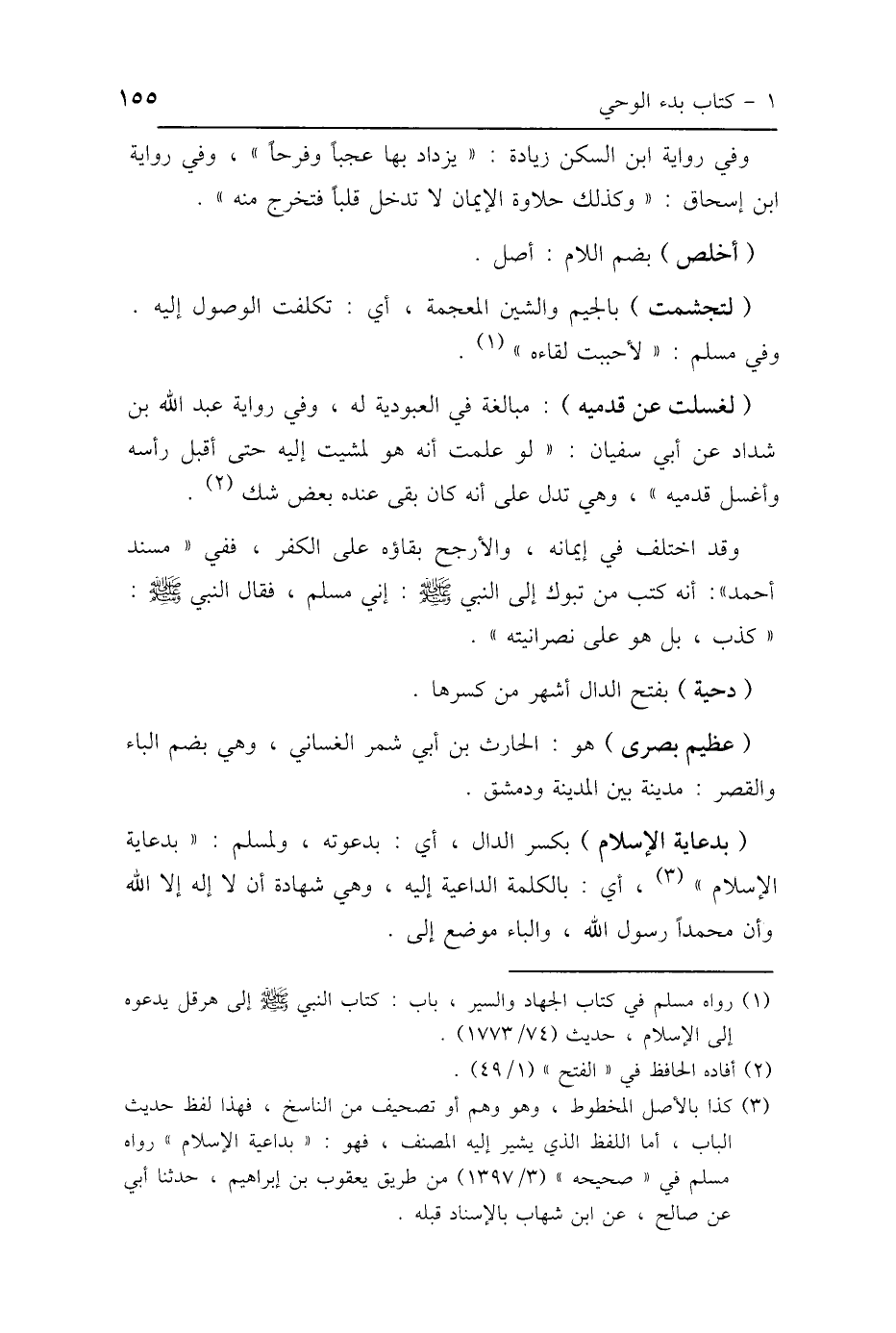 وفي رواية ابن السكن زيادة: "يزداد بها عجبًا وفرحًا"، وفي رواية ابن إسحاق: "وكذلك حلاوة الإيمان لا تدخل قلبًا فتخرج منه".