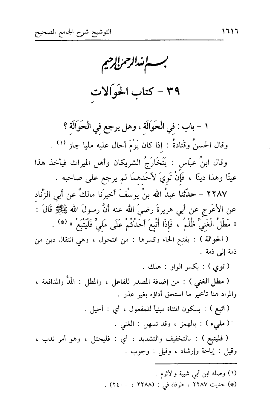 1 - بَابُ الحَوَالَةِ، وَهَلْ يَرْجِعُ فِي الحَوَالَةِ؟