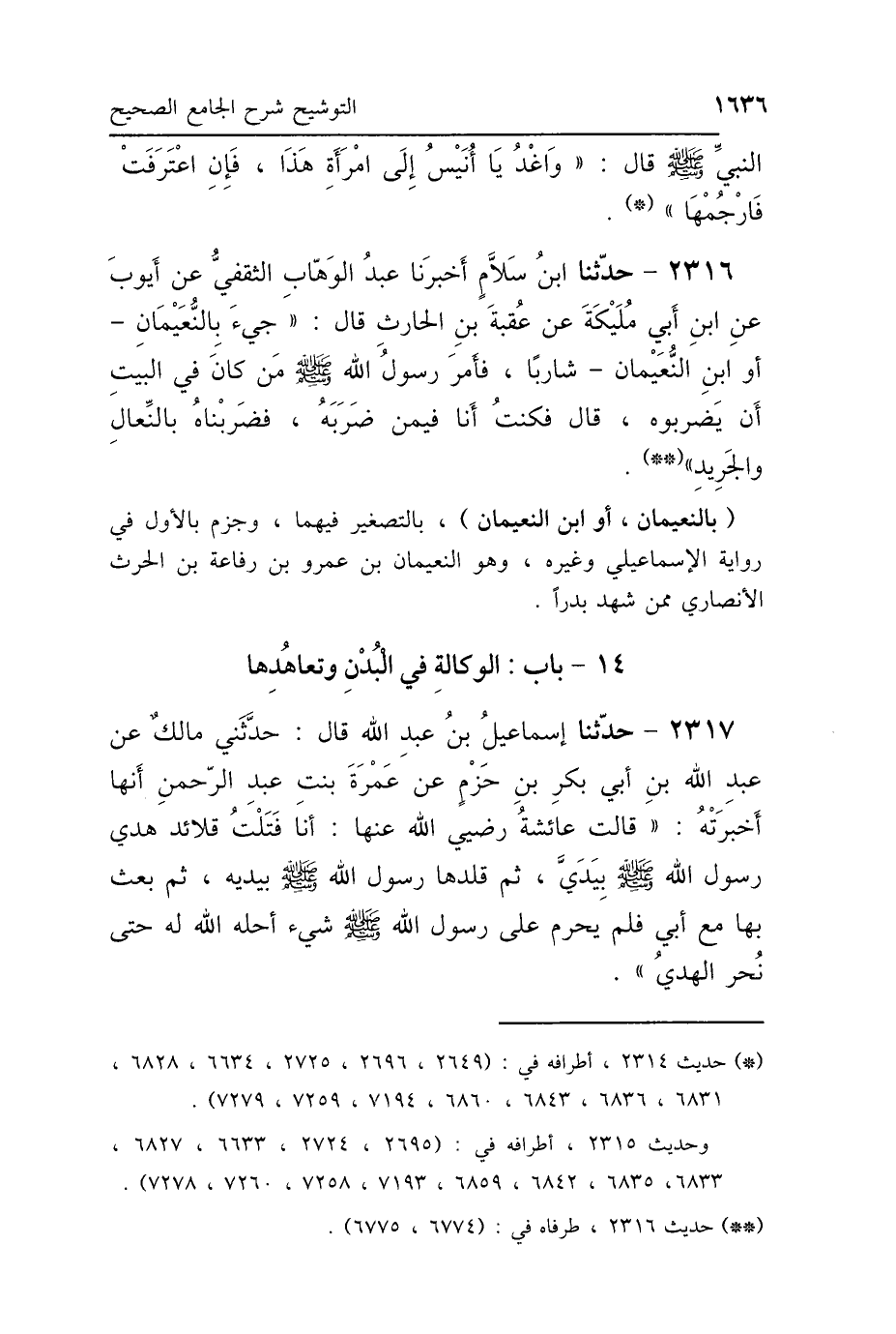 2316 - حَدَّثَنَا ابْنُ سَلَّامٍ، أَخْبَرَنَا عَبْدُ الوَهَّابِ الثَّقَفِيُّ، عَنْ أَيُّوبَ، عَنِ ابْنِ أَبِي مُلَيْكَةَ، عَنْ عُقْبَةَ بْنِ الحَارِثِ، قَالَ: «جِيءَ بِالنُّعَيْمَانِ، أَوْ ابْنِ النُّعَيْمَانِ، شَارِبًا فَأَمَرَ رَسُولُ اللَّهِ صَلَّى اللهُ عَلَيْهِ وَسَلَّمَ مَنْ كَانَ فِي البَيْتِ أَنْ يَضْرِبُوا» قَالَ: فَكُنْتُ أَنَا فِيمَنْ ضَرَبَهُ، فَضَرَبْنَاهُ بِالنِّعَالِ، وَالجَرِيدِ.
