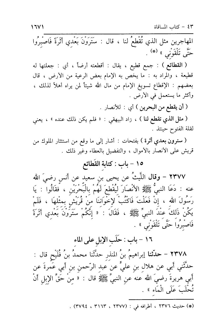 المُهَاجِرِينَ مِثْلَ الَّذِي تُقْطِعُ لَنَا، قَالَ: «سَتَرَوْنَ بَعْدِي أَثَرَةً، فَاصْبِرُوا حَتَّى تَلْقَوْنِي».
