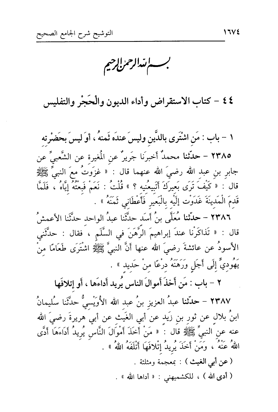 44 - كِتَاب فِي الِاسْتِقْرَاضِ وَأَدَاءِ الدُّيُونِ وَالحَجْرِ وَالتَّفْلِيسِ