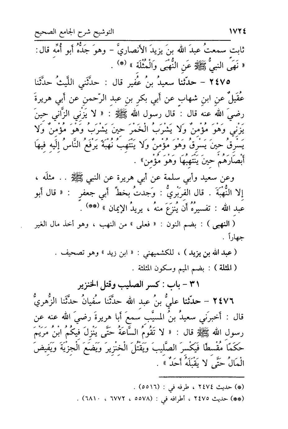 31 - بَابُ كَسْرِ الصَّلِيبِ وَقَتْلِ الخِنْزِيرِ