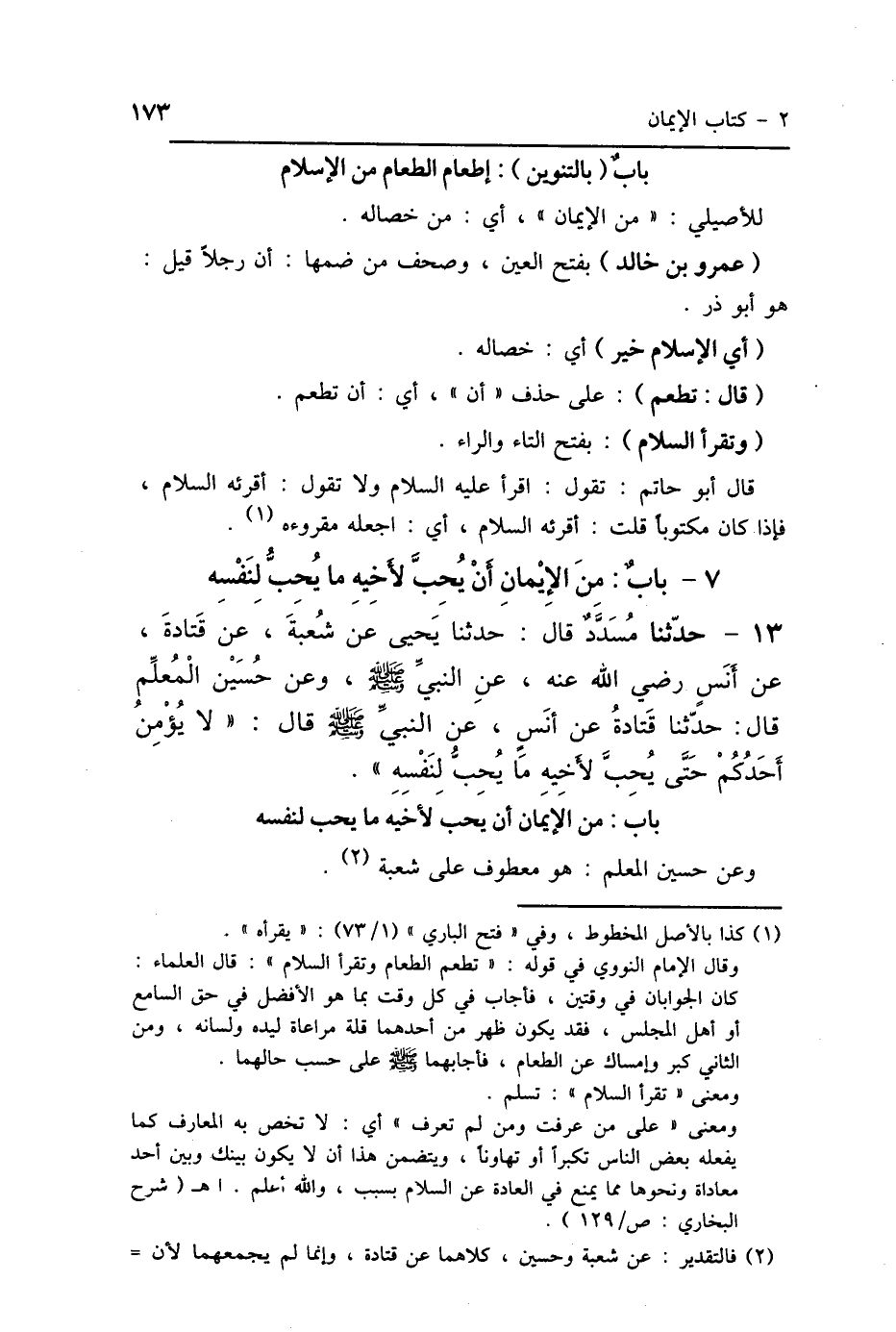 بابٌ (بالتنوين): إطعام الطعام من الإسلام