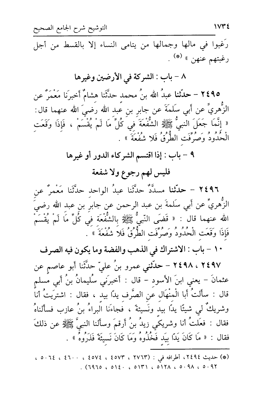8 - بَابُ الشَّرِكَةِ فِي الأَرَضِينَ وَغَيْرِهَا