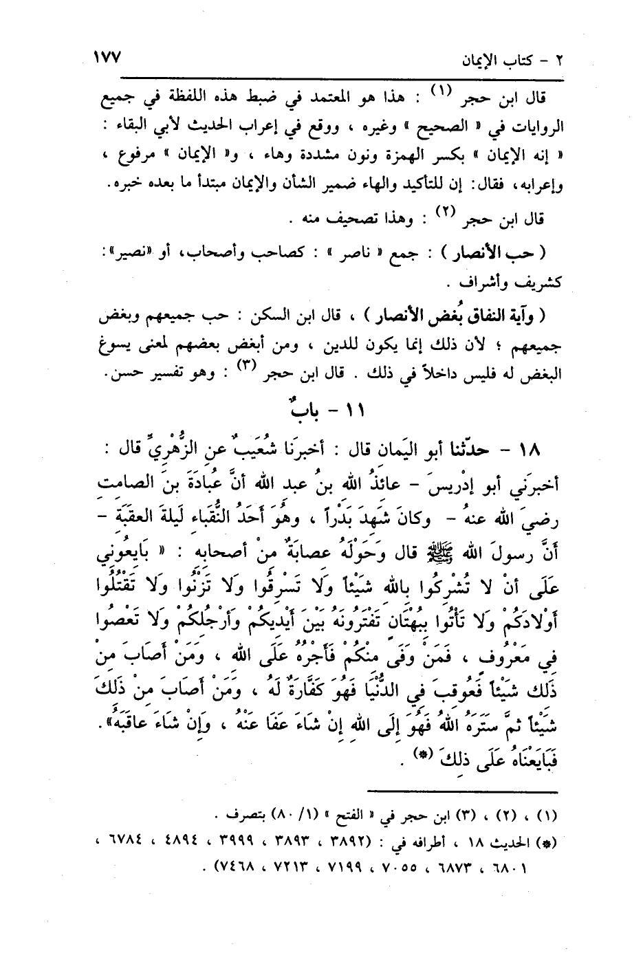 (وآية النفاق بُغض الأنصار)، قال ابن السكن: حب جميعهم وبغض جميعهم؛ لأن ذلك إنما يكون للدين، ومن أبغض بعضهم لمعنى يسوغ البغض له فليس داخلًا في ذلك. قال ابن حجر (3): وهو تفسير حسن.