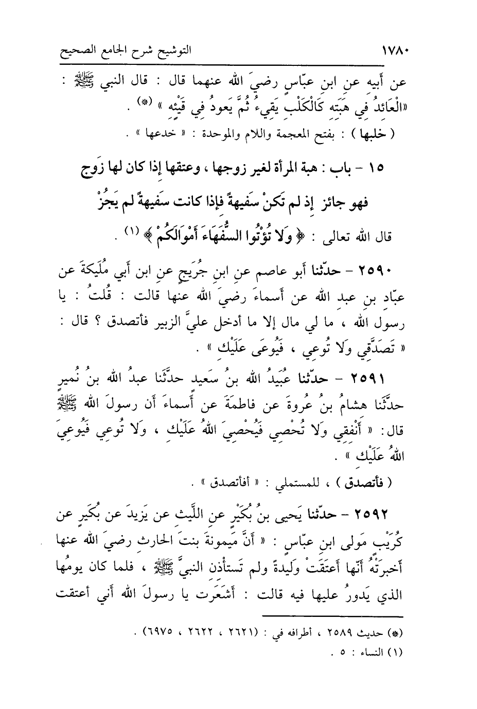 (فأتصدق)، للمستملي: "أفأتصدق".