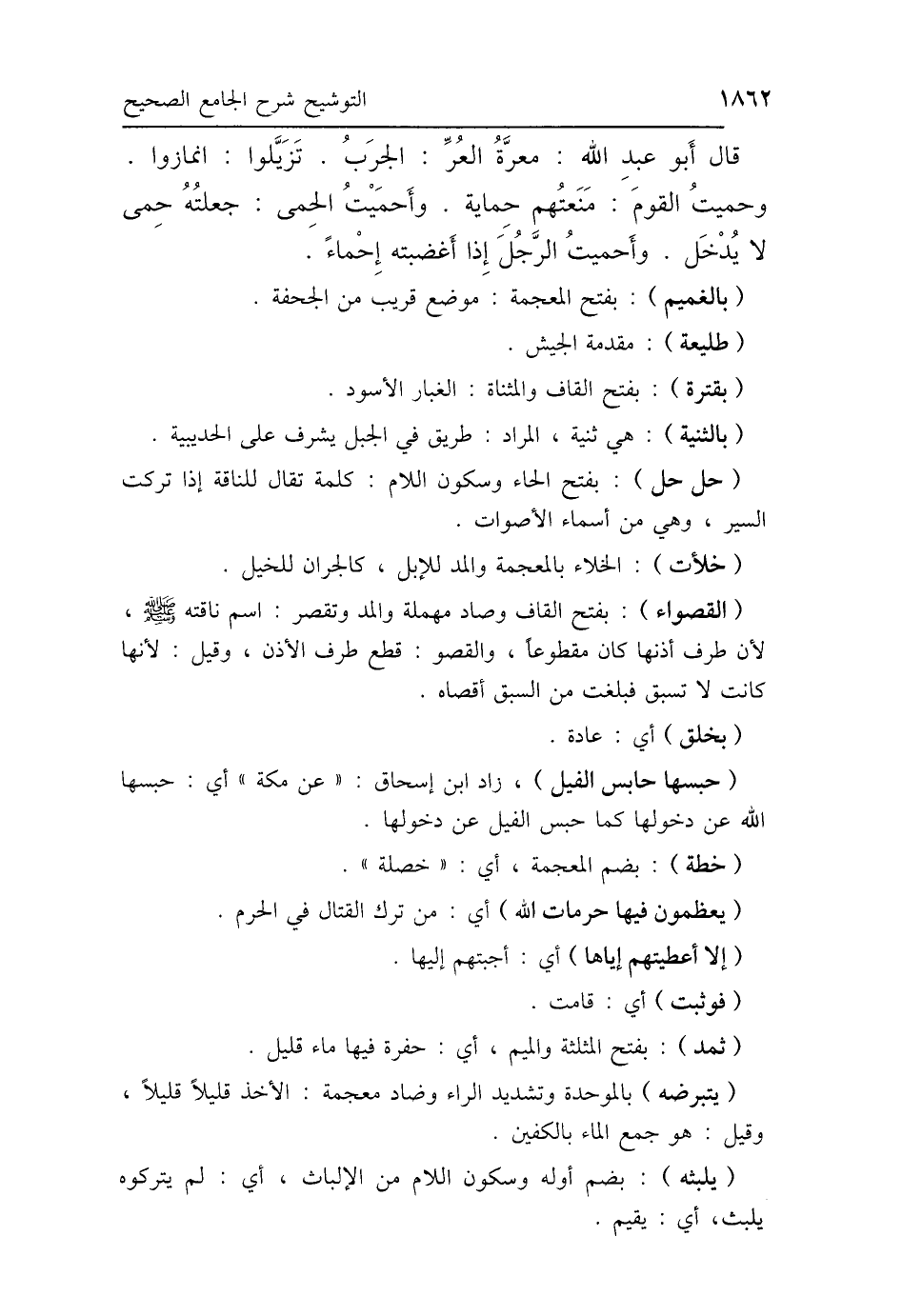 قَالَ أَبُو عَبْدِ اللَّهِ: " مَعَرَّةٌ العُرُّ: الجَرَبُ، تَزَيَّلُوا: تَمَيَّزُوا، وَحَمَيْتُ القَوْمَ: مَنَعْتُهُمْ حِمَايَةً، وَأَحْمَيْتُ الحِمَى: جَعَلْتُهُ حِمًى لاَ يُدْخَلُ، وَأَحْمَيْتُ الحَدِيدَ وَأَحْمَيْتُ الرَّجُلَ: إِذَا أَغْضَبْتَهُ إِحْمَاءً".