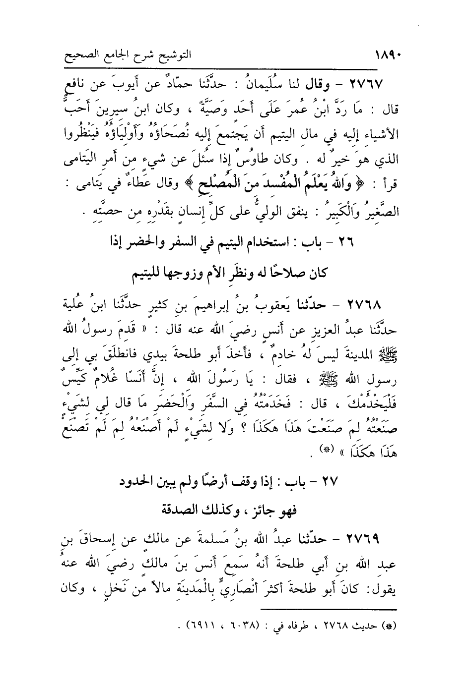 26 - بَابُ اسْتِخْدَامِ اليَتِيمِ فِي السَّفَرِ وَالحَضَرِ، إِذَا كَانَ صَلاَحًا لَهُ، وَنَظَرِ الأُمِّ وَزَوْجِهَا لِلْيَتِيمِ