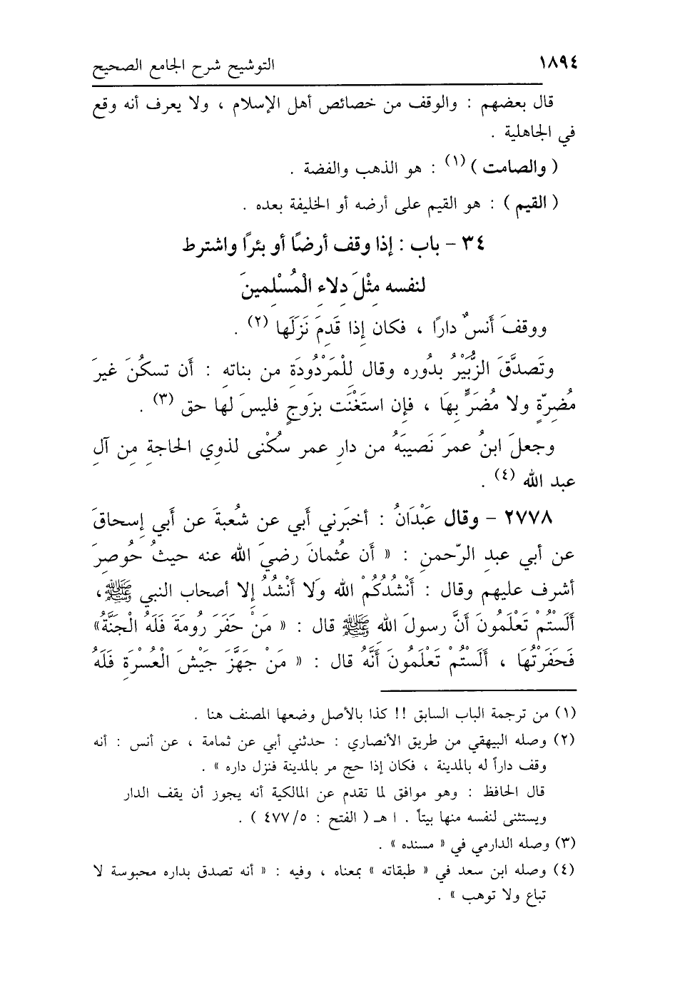 34 - بَابُ إِذَا وَقَفَ أَرْضًا أَوْ بِئْرًا، وَاشْتَرَطَ لِنَفْسِهِ مِثْلَ دِلاَءِ المُسْلِمِينَ
