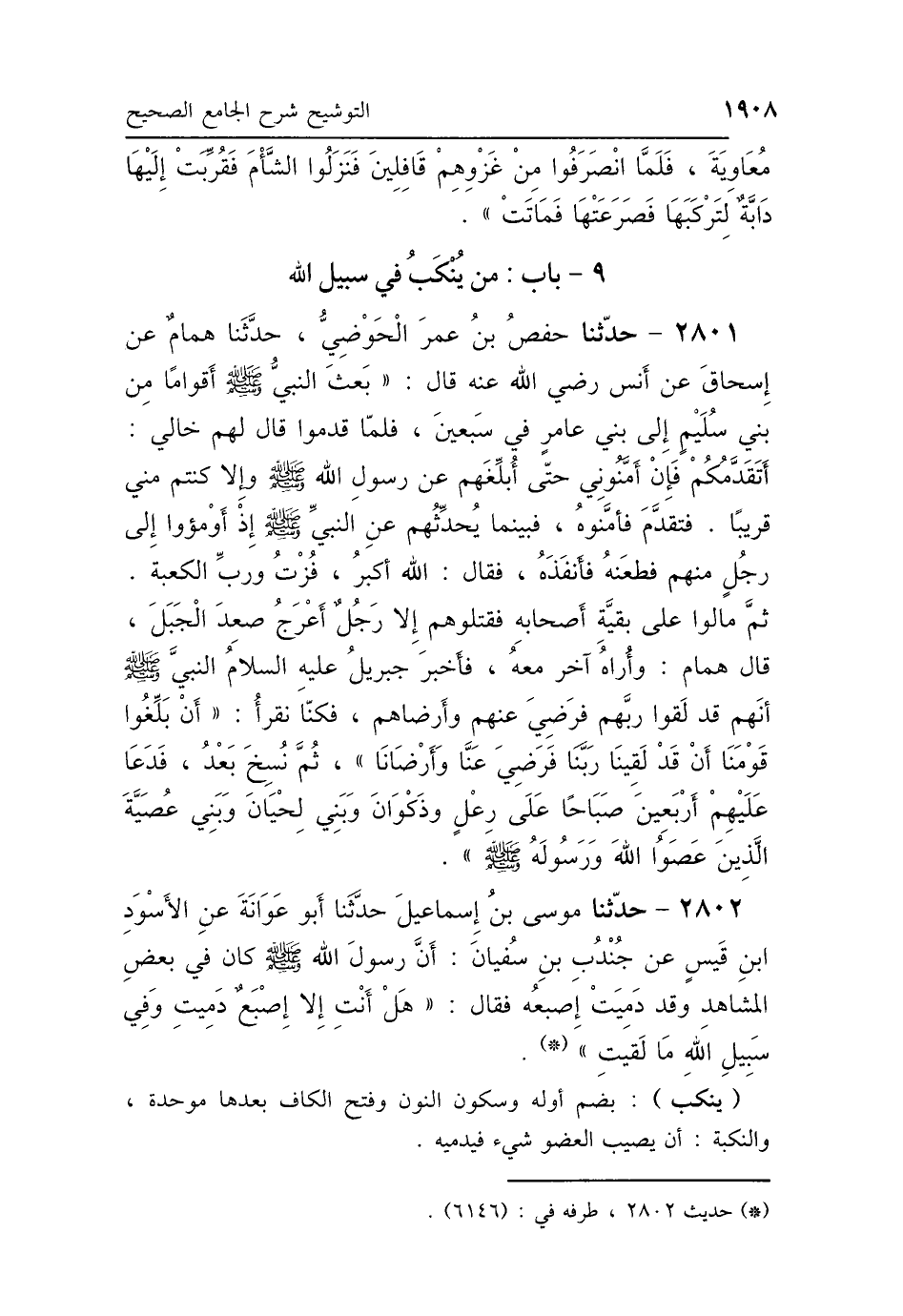 9 - بَابُ مَنْ يُنْكَبُ فِي سَبِيلِ اللَّهِ