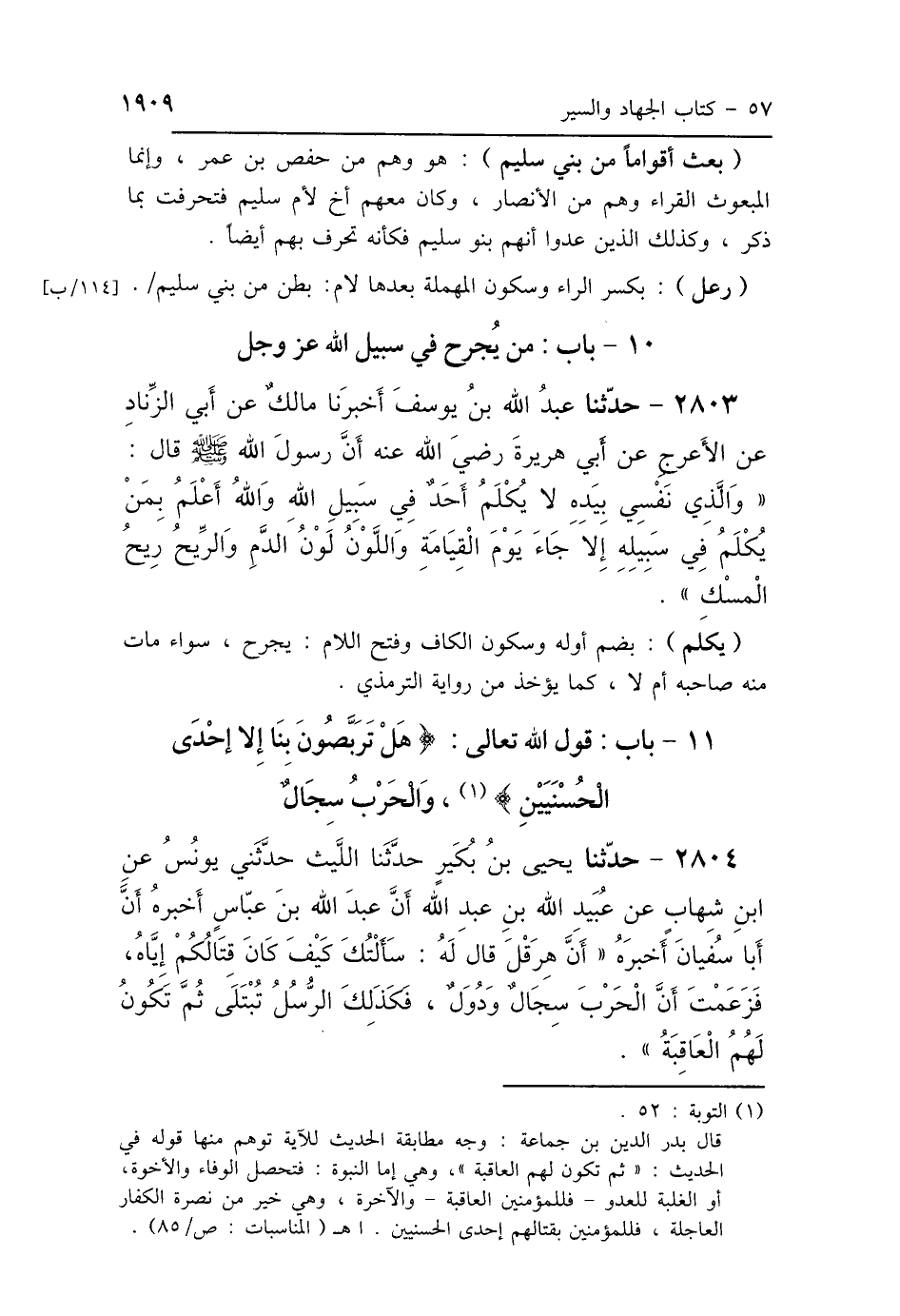 11 - بَابُ قَوْلِ اللَّهِ عَزَّ وَجَلَّ: {قُلْ هَلْ تَرَبَّصُونَ بِنَا إِلَّا إِحْدَى الحُسْنَيَيْنِ} [التوبة: 52] وَالحَرْبُ سِجَالٌ