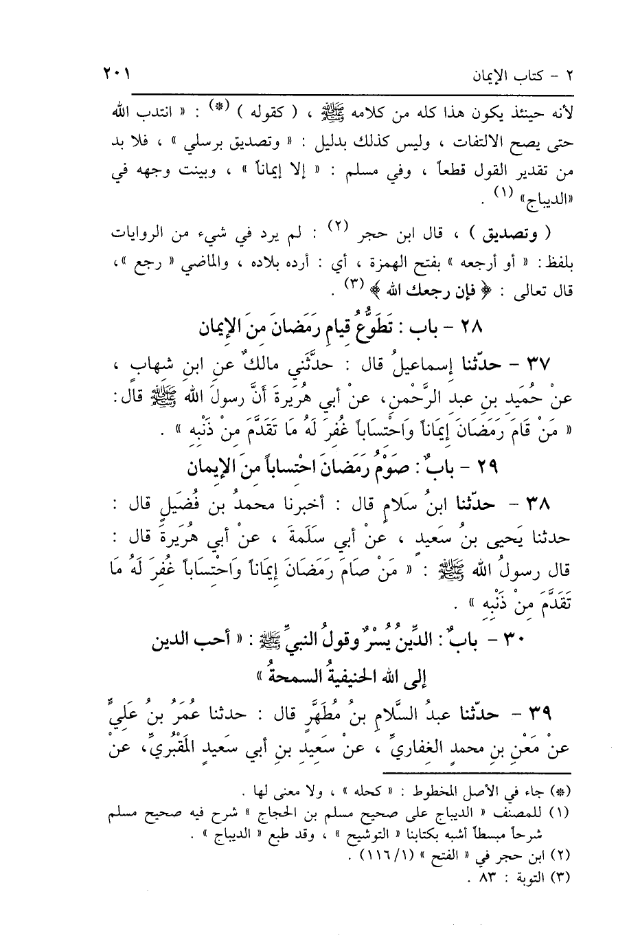 29 - بَابٌ: صَوْمُ رَمَضَانَ احْتِسَابًا مِنَ الإِيمَانِ