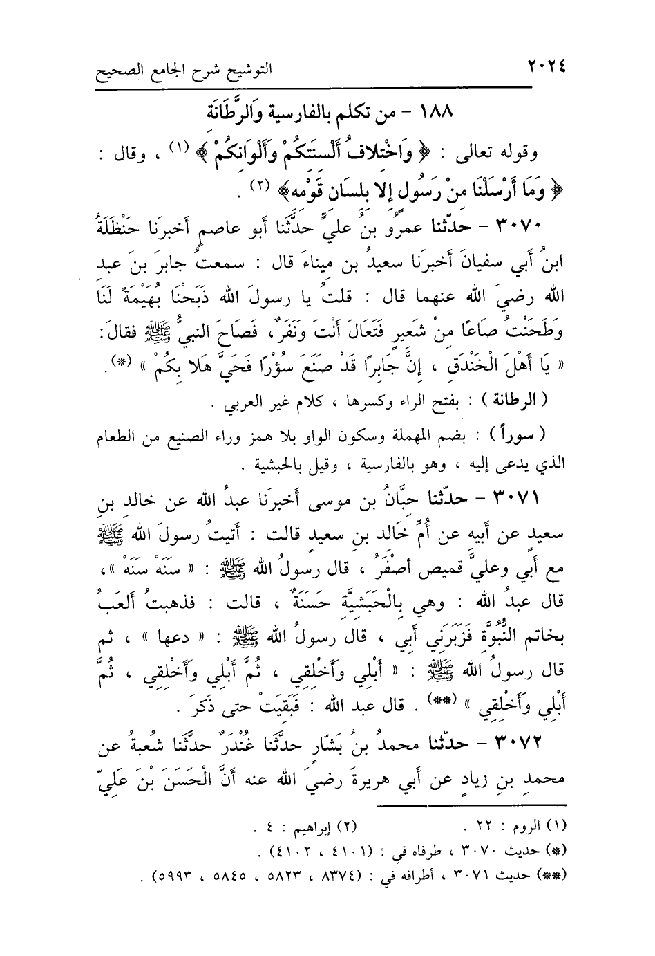 188 - بَابُ مَنْ تَكَلَّمَ بِالفَارِسِيَّةِ وَالرَّطَانَةِ