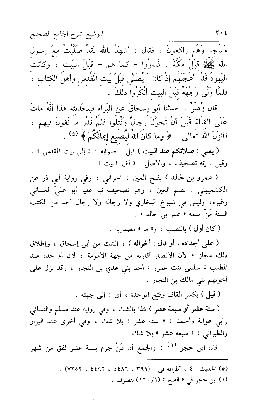 مَسْجِدٍ وَهُمْ رَاكِعُونَ، فَقَالَ: أَشْهَدُ بِاللَّهِ لَقَدْ صَلَّيْتُ مَعَ رَسُولِ اللَّهِ صَلَّى اللهُ عَلَيْهِ وَسَلَّمَ قِبَلَ مَكَّةَ، فَدَارُوا كَمَا هُمْ قِبَلَ البَيْتِ، وَكَانَتِ اليَهُودُ قَدْ أَعْجَبَهُمْ إِذْ كَانَ يُصَلِّي قِبَلَ بَيْتِ المَقْدِسِ، وَأَهْلُ الكِتَابِ، فَلَمَّا وَلَّى وَجْهَهُ قِبَلَ البَيْتِ، أَنْكَرُوا ذَلِكَ. قَالَ زُهَيْرٌ: حَدَّثَنَا أَبُو إِسْحَاقَ، عَنِ البَرَاءِ فِي حَدِيثِهِ هَذَا: أَنَّهُ مَاتَ عَلَى القِبْلَةِ قَبْلَ أَنْ تُحَوَّلَ رِجَالٌ وَقُتِلُوا، فَلَمْ نَدْرِ مَا نَقُولُ فِيهِمْ، فَأَنْزَلَ اللَّهُ تَعَالَى: {وَمَا كَانَ اللَّهُ لِيُضِيعَ إِيمَانَكُمْ} [البقرة: 143].