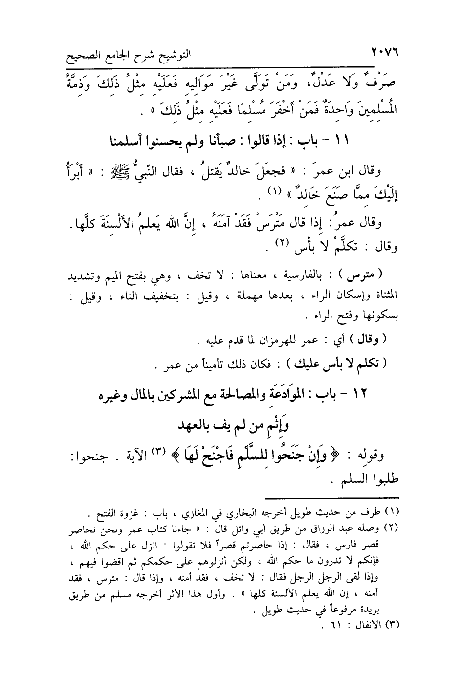 12 - بَابُ المُوَادَعَةِ وَالمُصَالَحَةِ مَعَ المُشْرِكِينَ بِالْمَالِ وَغَيْرِهِ، وَإِثْمِ مَنْ لَمْ يَفِ بِالعَهْدِ