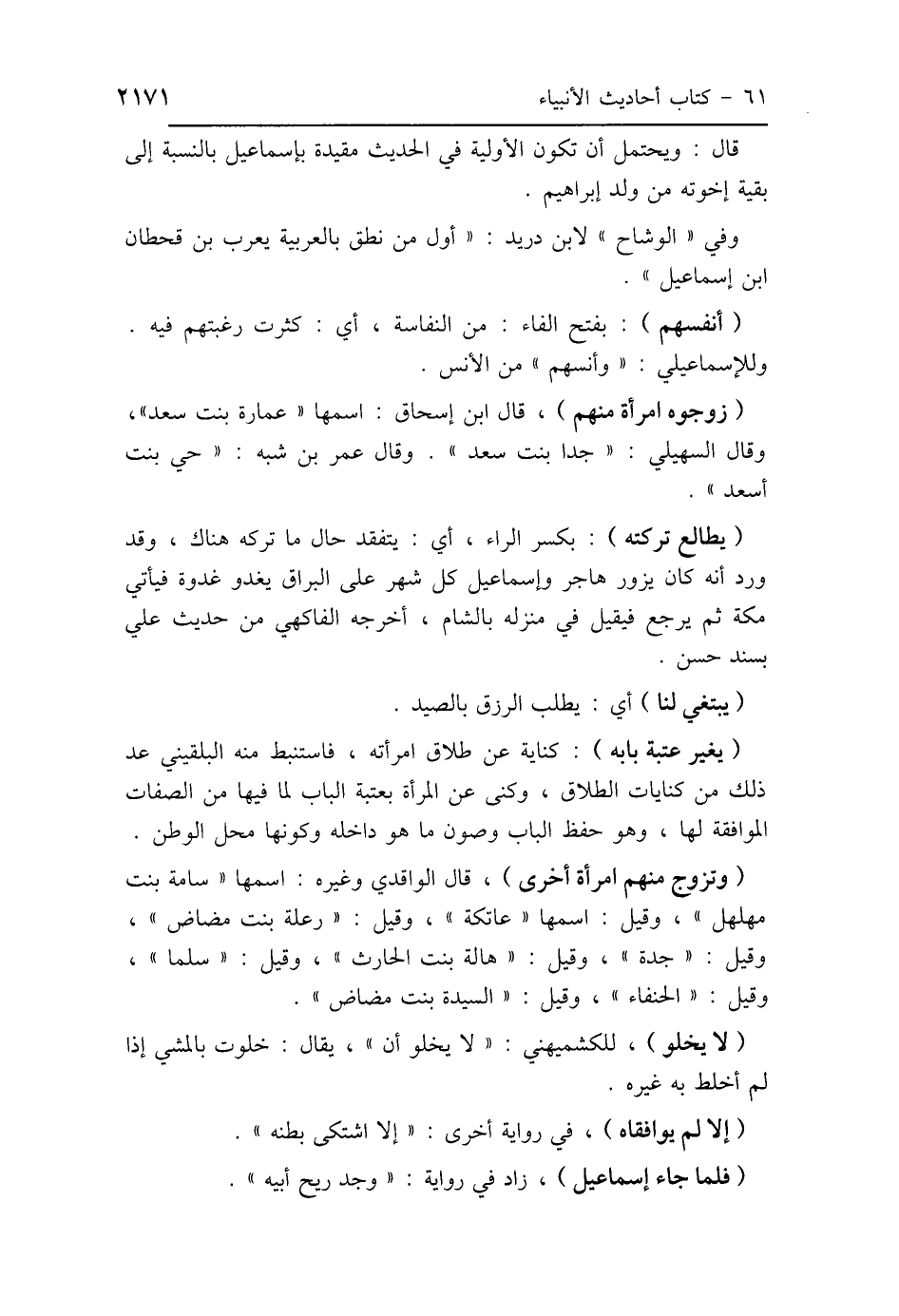 قال: ويحتمل أن تكون الأولية في الحديث مقيدة بإسماعيل بالنسبة إلى بقية إخوته من ولد إبراهيم.